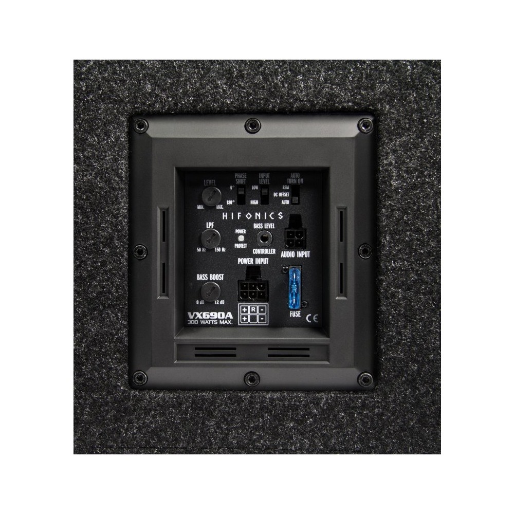 Активната система Hifonics VULCAN VX690A е изключително компактна, тънка и лека. Благодарение на широчина едва 45 cm и височина 28,5 cm намира място навсякъде в автомобила и е идеална за малки и средно големи превозни средства. Тази елегантна мини-кутия с висококачествен килим и впечатляващи лога също така привлича вниманието визуално. Благодарение на използването на напълно новоразработен сабуфър 6 x 9" с натоварена хартиена мембрана и прецизно настроен корпус с басрефлекс порт, системата за багажник звучи като „Big One“ - прецизна, остра и целенасочена. Вътре в кутията работи модул с цифров усилвател с мощност до 300 W/MAX, който благодарение на входовете за високо ниво и функцията за автоматично включване може лесно да се интегрира във всяка аудиосистема.Основни характеристики