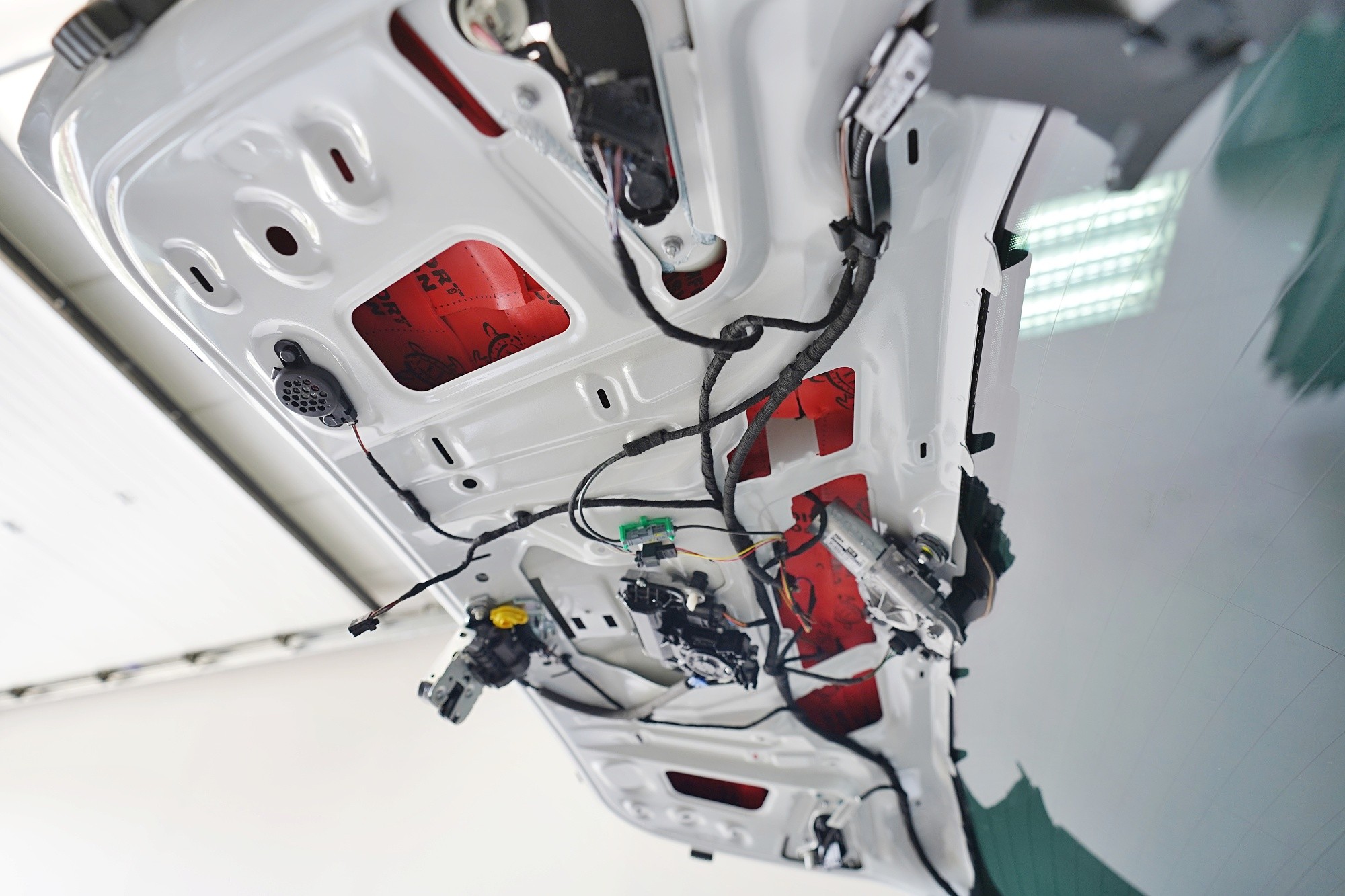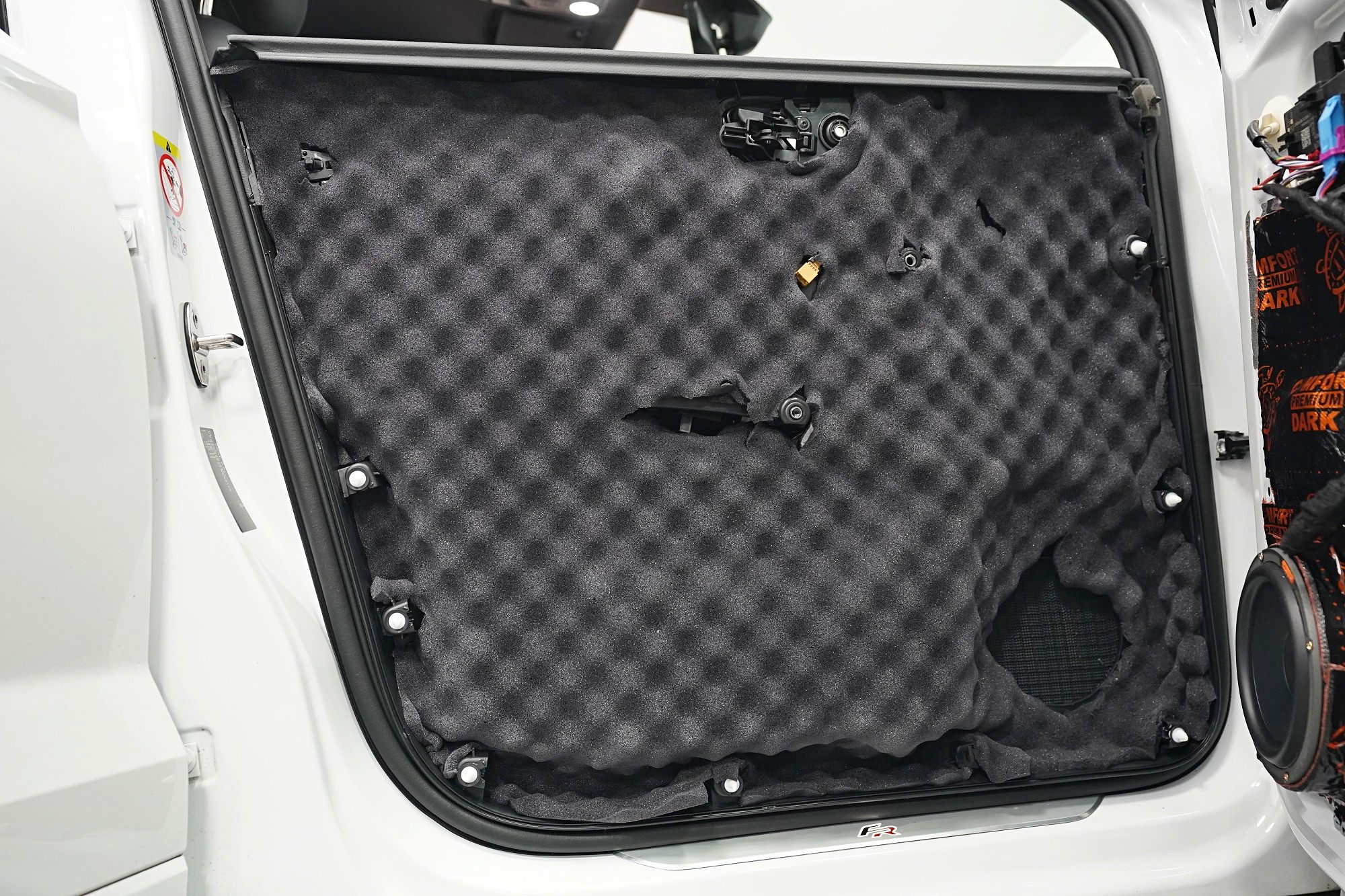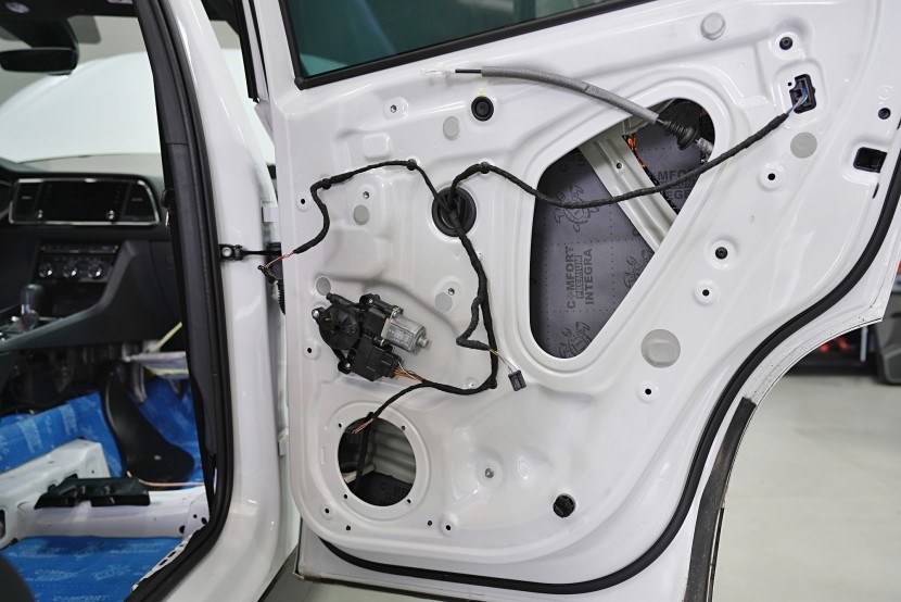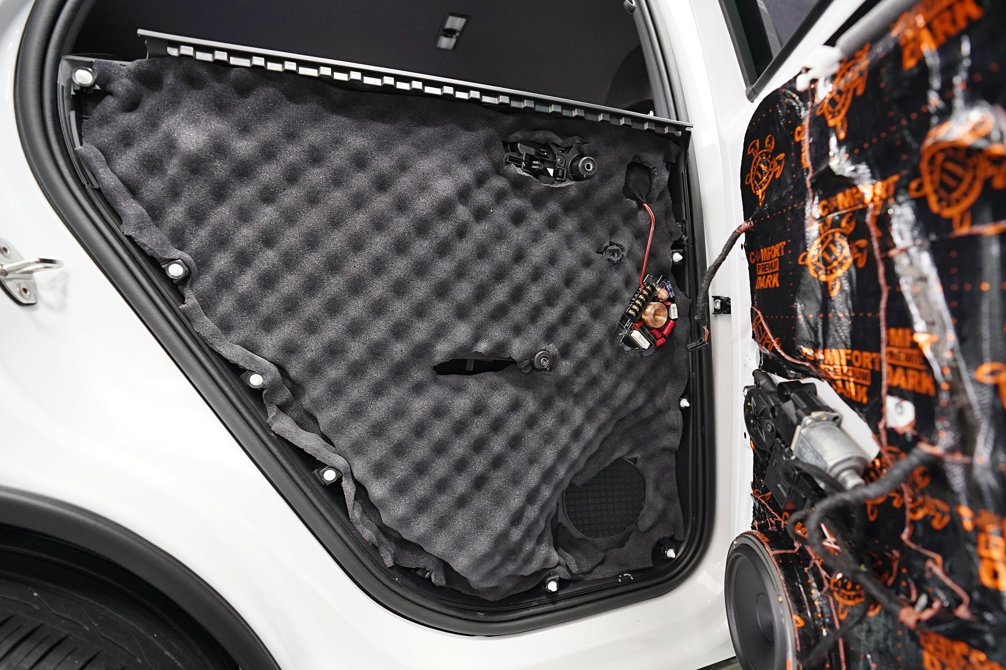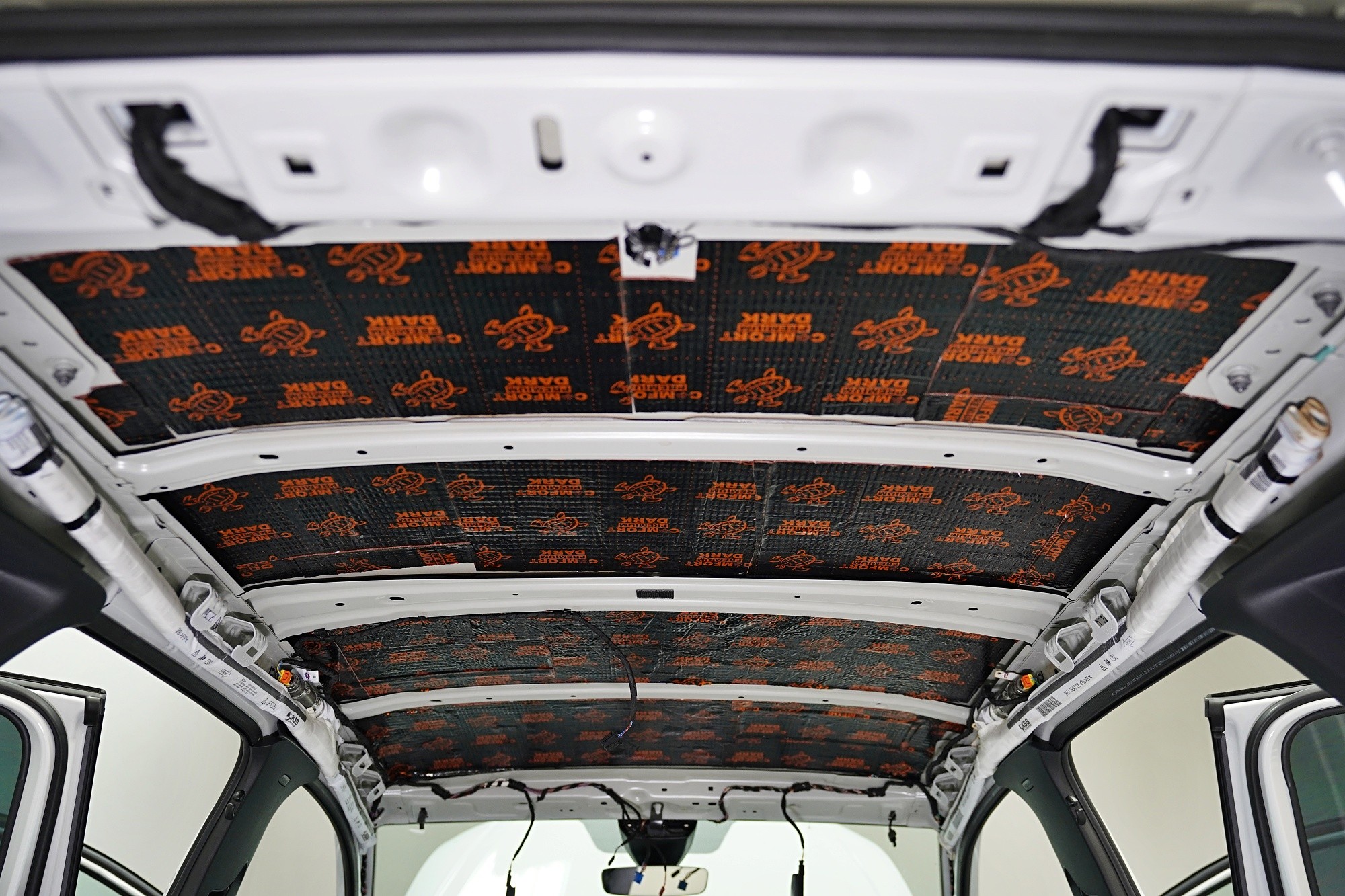 Шумоизолация на испанския SUV Seat Ateca в спортната версия FR. Това близнак на популярния чешки еквивалент Škoda Karoq е технически почти идентичен, произвежда се в същия завод в Kvasinách и освен отпред и отзад представлява практически същия автомобил. За нас Ateca е по-успешна от гледна точка на дизайн и двигателят 2,0 TSI с мощност 140 kW в комбинация със седемстепенна автоматична скоростна кутия определено е по-интересен избор. Личните симпатии обаче нека оставим настрана и да погледнем заводската звукоизолация. Тя е напълно идентична с тази при Škoda Karoq, с други думи на много ниско ниво. Гол метал с точкова защита срещу вибрации и звукоизолация, присъстваща само във вид на гума в предната част на пода. С увеличаване на скоростта започват да се проявяват шумове от предните и задните гуми, шум от двигателя и скоростната кутия, както и околен пътен и аеродинамичен шум. Решението е комплексна звукоизолация с първокласни материали Comfortmat и то в нашия пакет шумоизолация Expert. Той включва шумоизолация на всички важни части на автомобила, конкретно предните, задните и петите врати, пода, покрива, багажното отделение, капака, таблото и предните и задните вътрешни калници. За шумоизолацията едновременно работят четирима наши опитни техници, които извършват монтажа в рамките на 1 ден.