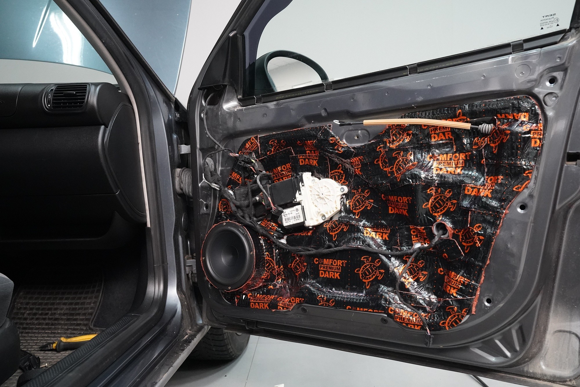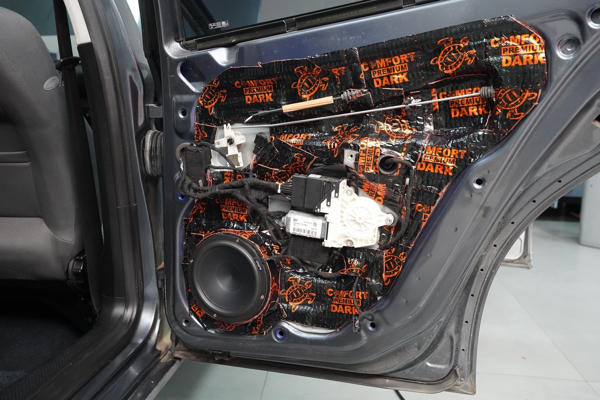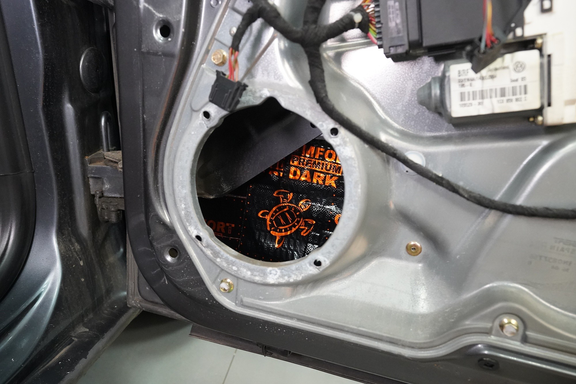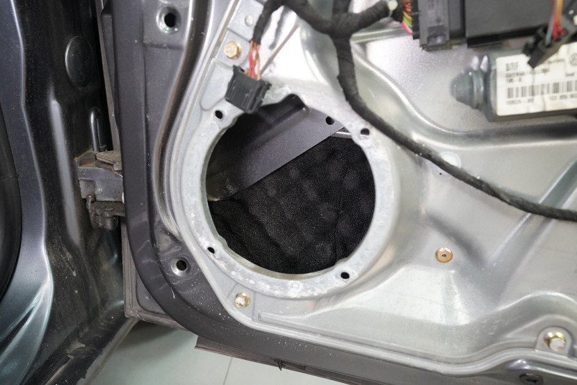 Вид на инсталациятаInstalace reproduktorů do předních a zadních dveří a subwooferu