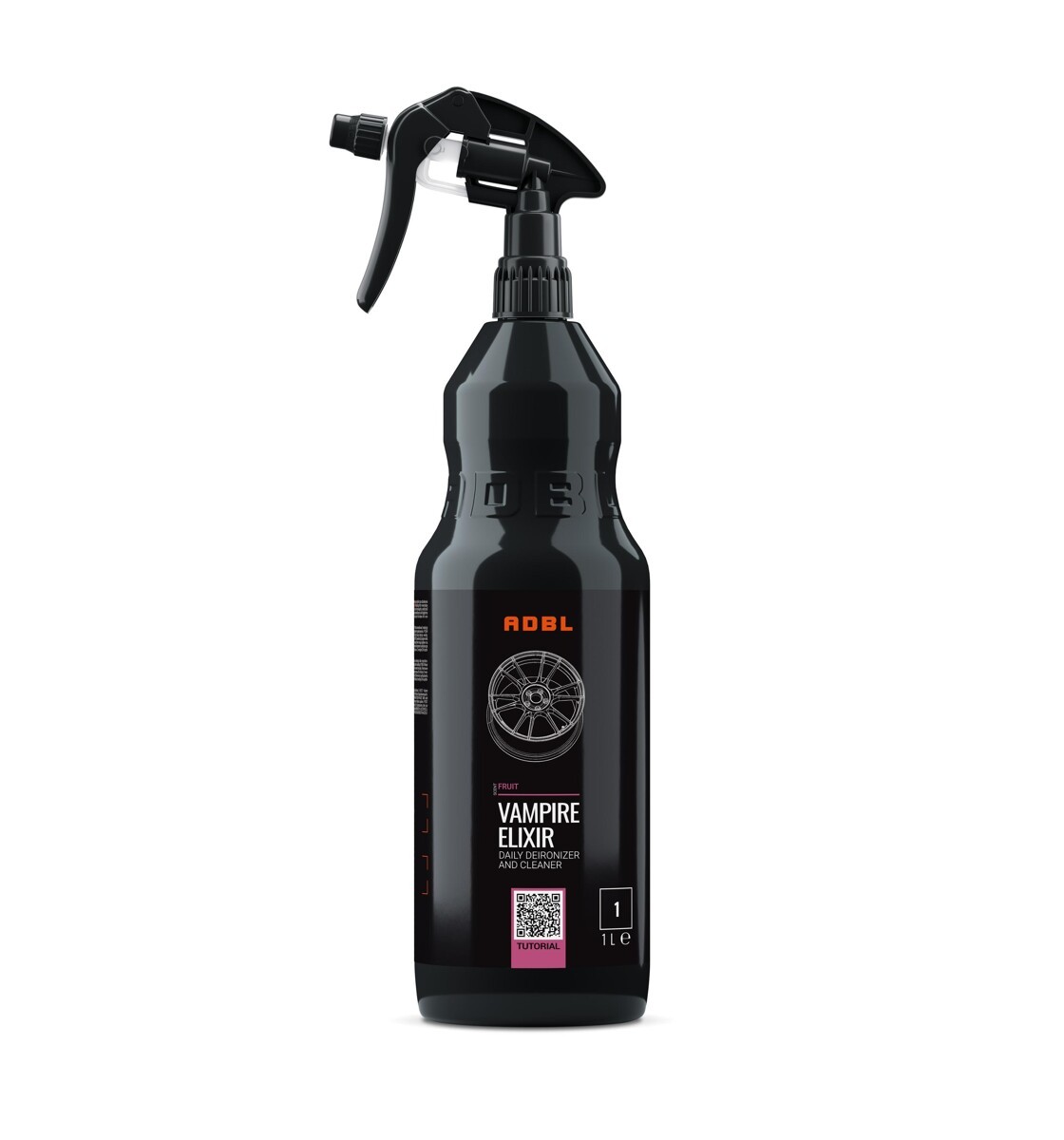 ADBL Vampire Elixir е pH неутрален гел за ежедневно почистване на всички видове джанти. В ADBL смениха името, за да сте сигурни, че продуктът има сила, която наистина работи. Перфектно премахва праха от спирачните накладки и текущото експлоатационно замърсяване. ADBL Vampire Elixir се отличава с бързо действие в рамките на 3 до 5 минути. Благодарение на внимателно подбраните съставки е напълно без неприятна миризма, типична за този тип продукти. Новата формула е също много по-щадяща към сплави, съдържащи желязо.