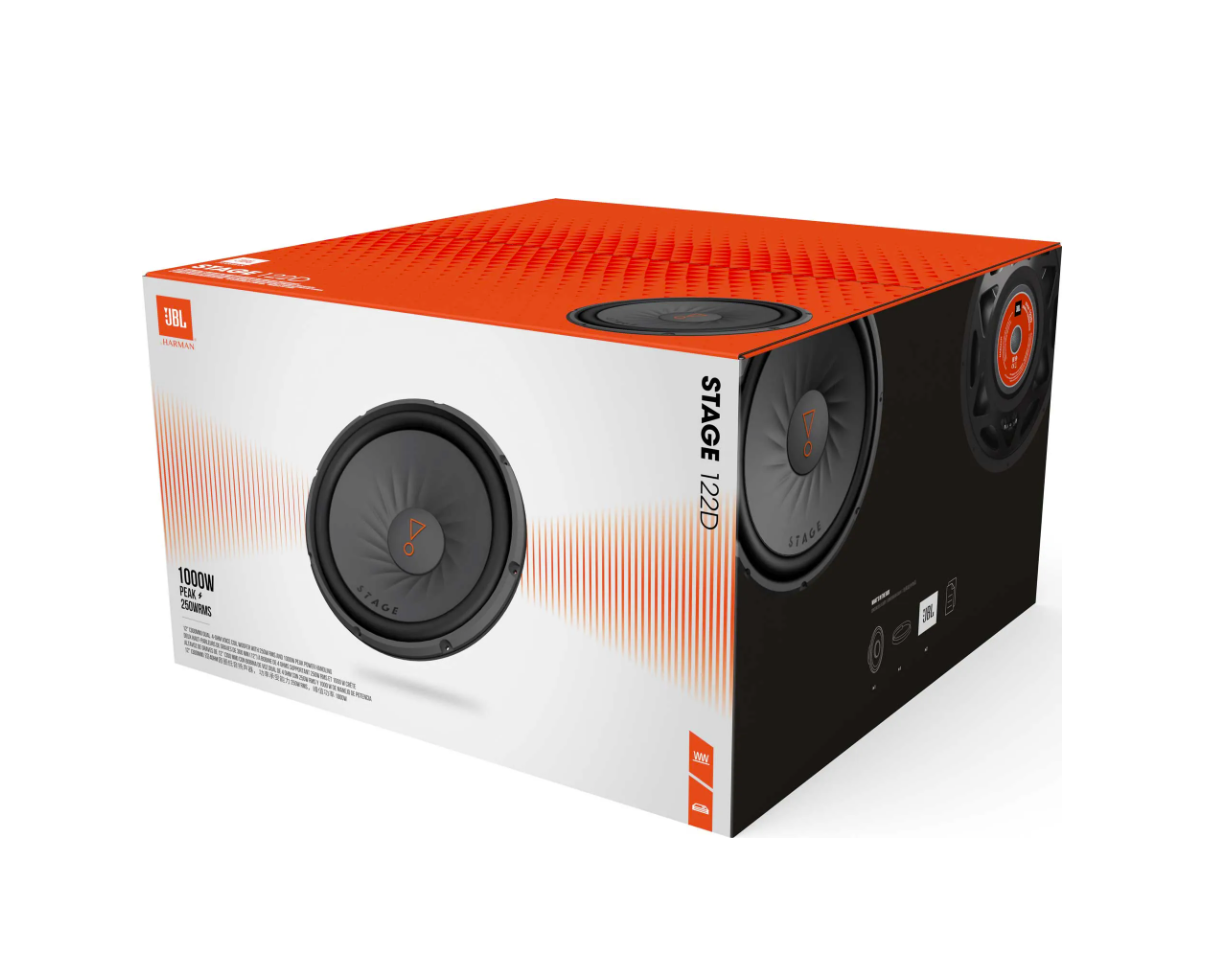 Субуферът JBL Stage 122D е мощен 12" (300 mm) компонентен субуфер, проектиран за силни, дълбоки и динамични баси, като същевременно запазва много добро съотношение цена/производителност. В сравнение с обикновените серийни субуфери той осигурява значително по-високо акустично налягане, по-ниско изкривяване и по-голяма гъвкавост при свързване, което го прави отличен както за базов ъпгрейд, така и за по-мощни car audio конфигурации.