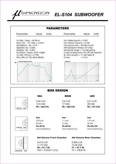 10\", 450 W RMS, 85 dB (SPL 2,83 V/1 m), 2 x 2 Ω