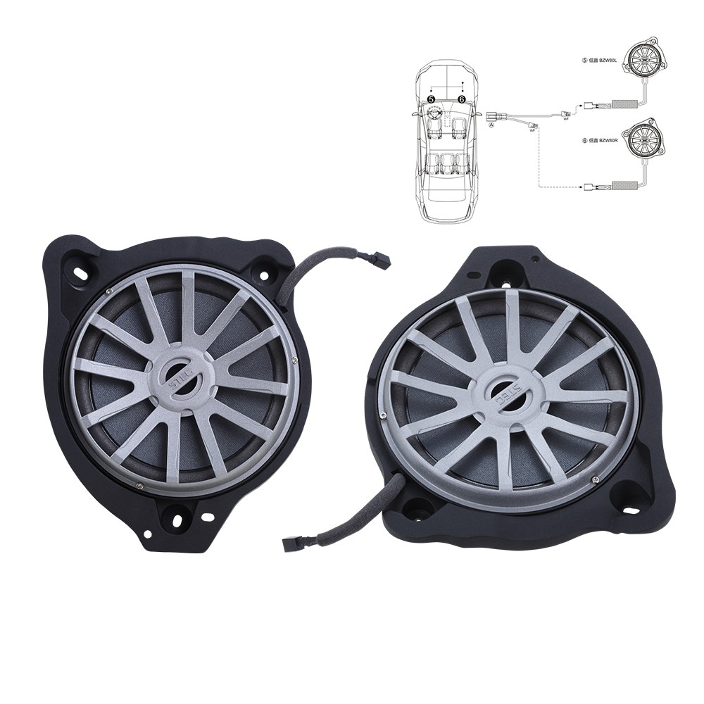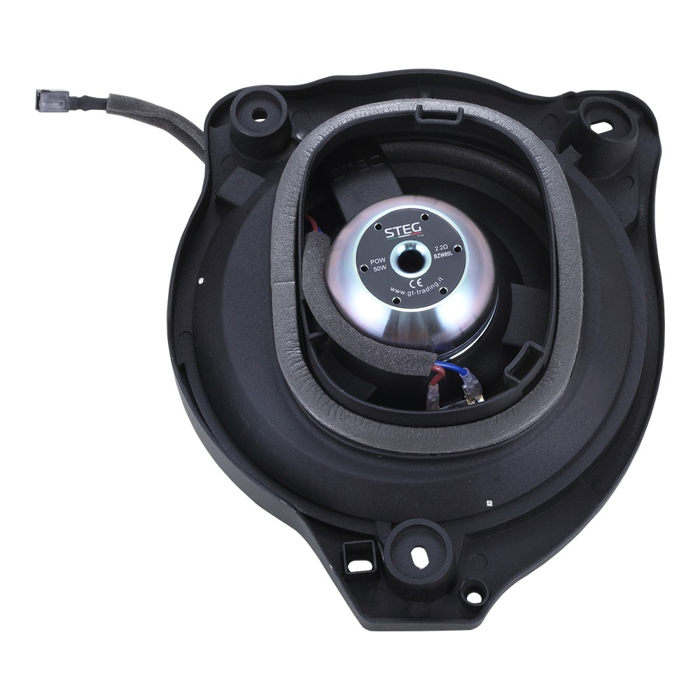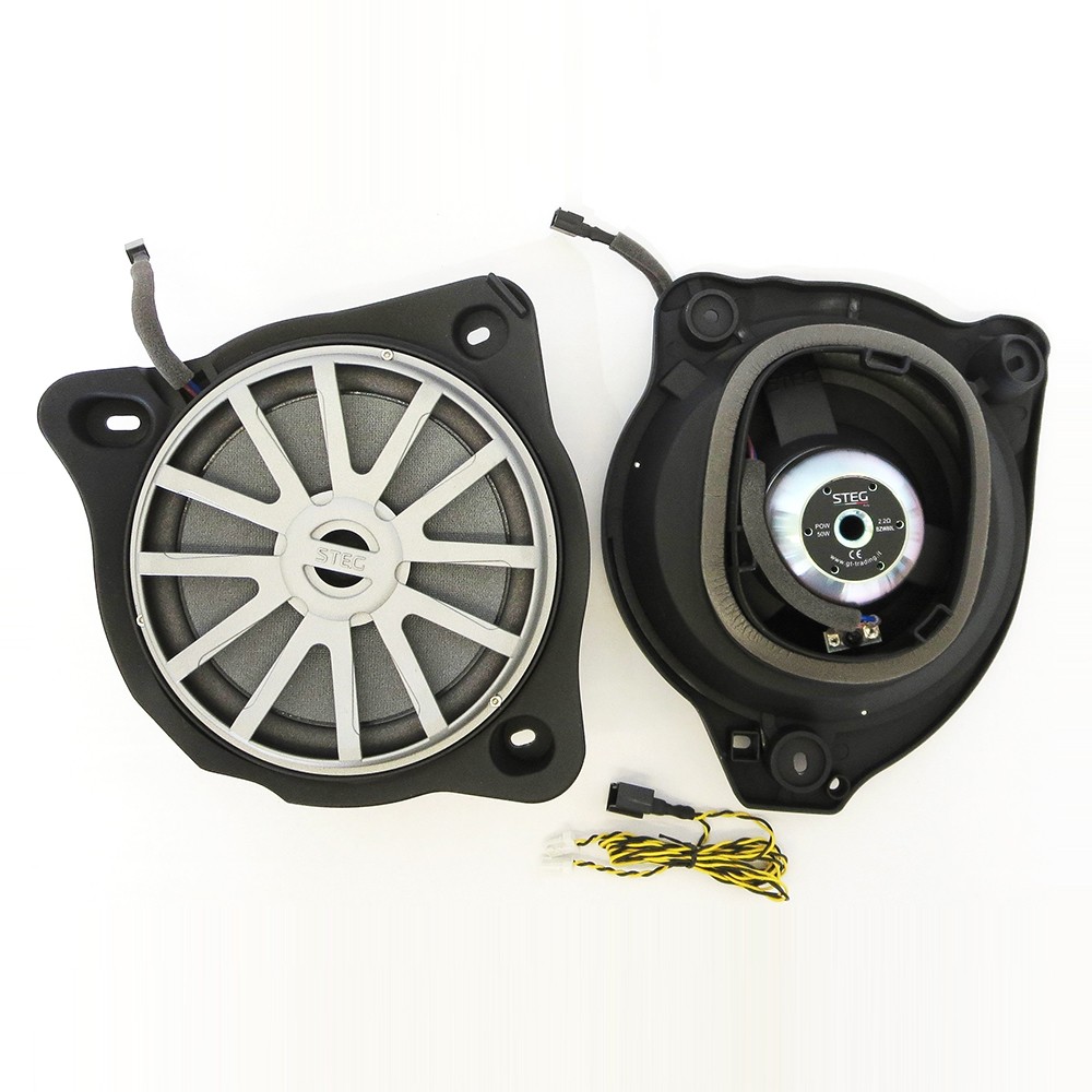 Ако в колата няма аудио система Burmester, препоръчваме да свържете допълнително усилвател към събуфърите за достигане на максималния им потенциал. За лесен монтаж в малки пространства препоръчваме усилвател STEG K2.01. (В оригиналната аудио система има само един 16 cm събуфър и на мястото на втория е капачка).