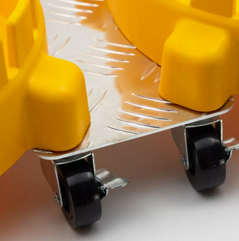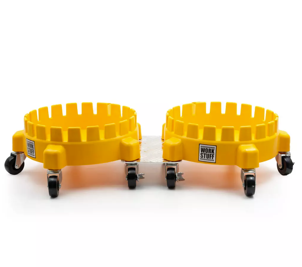 Work Stuff Bucket Dolly Adapter е алуминиева съединителна част, която позволява свързване на две колички в единна и здрава система. Това позволява едновременно пренасяне на две кофи, което значително оптимизира процеса на миене на превозни средства, особено при използване на метода „две кофи“. Монтажът на адаптера е много прост — преди да поставите колелата, поставете металната плочка в отворите и след това натиснете колелата на място. Готовата конструкция образува стабилна и устойчива система, готова да носи голямо количество вода. Адаптерът не само увеличава функционалността на количката, но и оптимизира вашата работа.Основни характеристики