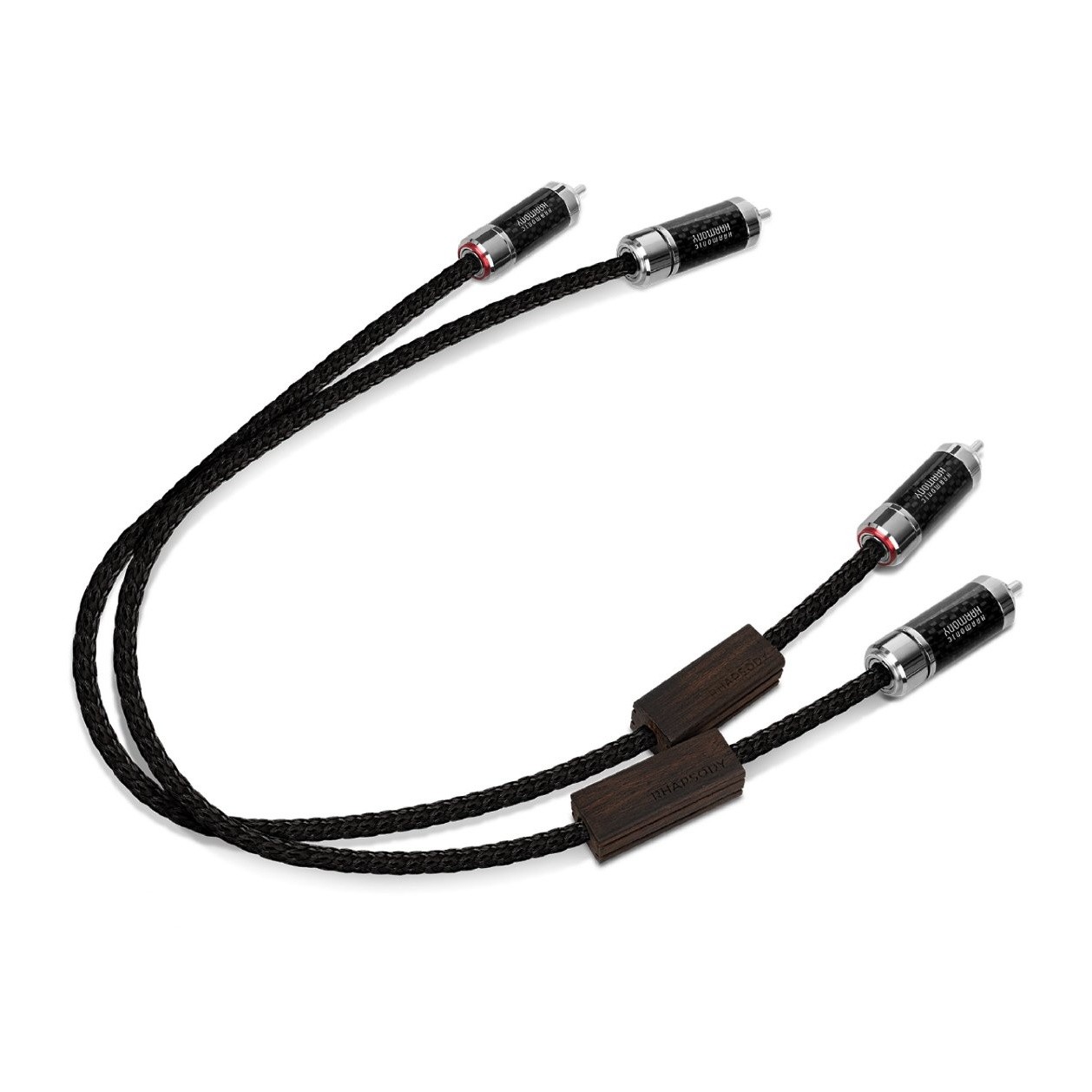 Основата на кабела се състои от два проводника с напречно сечение 16 AWG от ултра чиста OCC мед (Ohno Continuous Cast), защитени с въздушен диелектрик и ръчно усукана структура, която допринася за минимизиране на външните смущения и изкривявания. Кабелът е завършен с четири посребрени RCA конектора с елегантен карбонов корпус, които осигуряват отлична проводимост и дълъг живот. Благодарение на прецизната изработка и използването на първокласни материали, Harmonic Harmony Rhapsody се превръща в идеален избор за всеки, който иска да извлече максимума от своята озвучителна система.