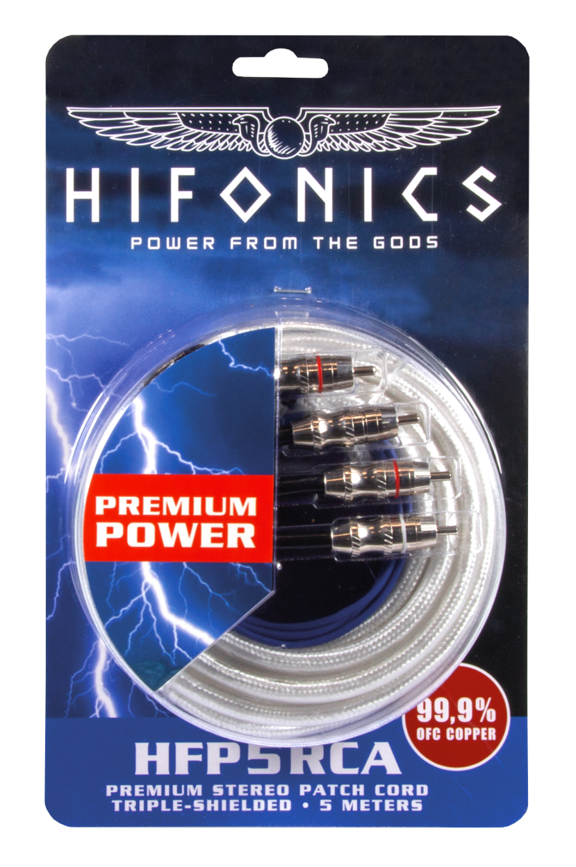 Качествено изпълнените сигнални кабели Hifonics в сребрист цвят изглеждат луксозно, и не само това — те са тройно екранирани и по този начин ефективно филтрират всички смущения в автомобила. Разполагат с масивни метални RCA конектори, а в комплекта е включен и remote кабел 0,5 mm². Дължината на сигналните кабели Hifonics HFP5RCA е точно 5 метра.Основни характеристики