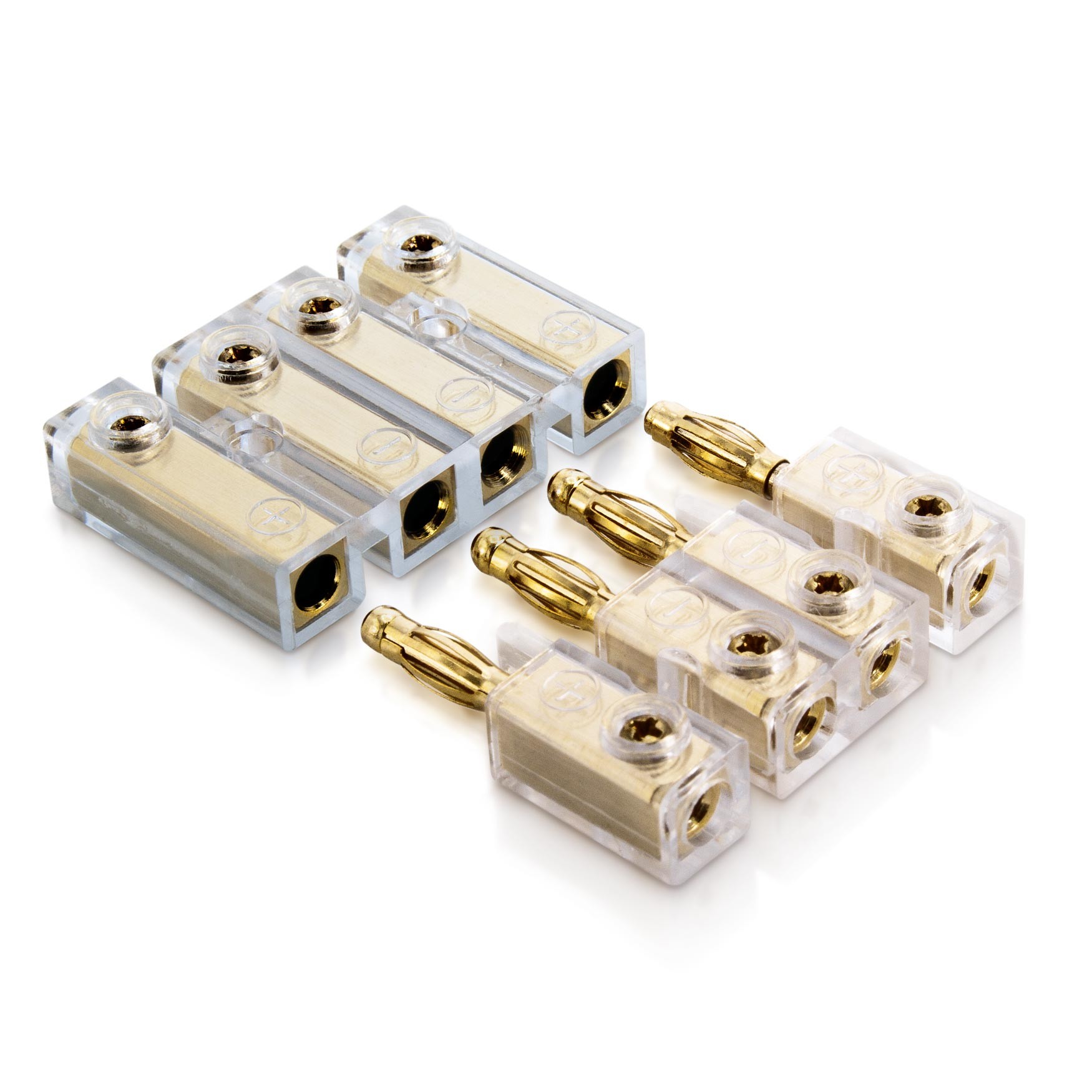 Четирипинов банан конектор, идеален за бързо и безопасно разединяване на кабелни връзки. За кабели с сечение до 4 mm², идеален за свързване към заден панел или субуфер. Позлатен с 24-каратово злато, размери 46 x 42 x 11 mm.