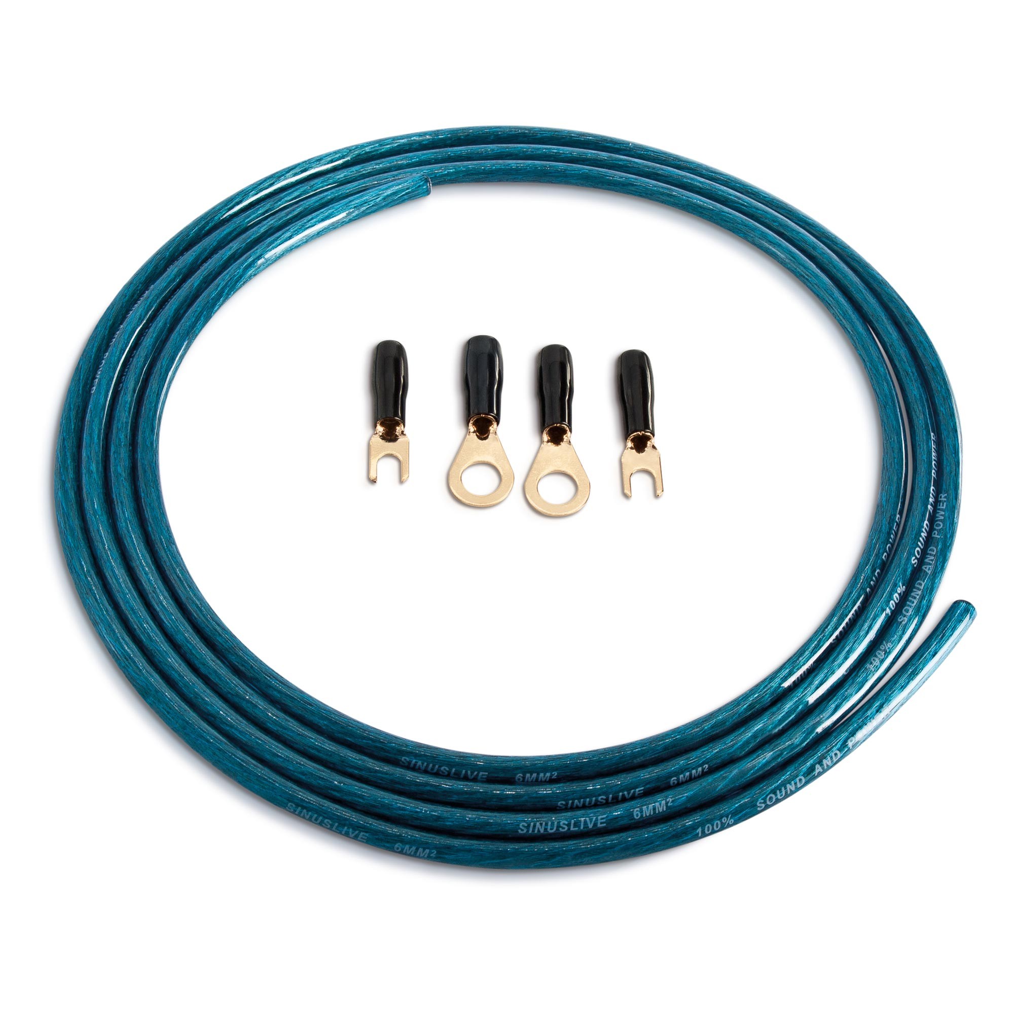 zахранващ кабел, CCA, сечение 6 mm², синя изолация, 2 метра, 2 уши + 2 вилици в опаковката