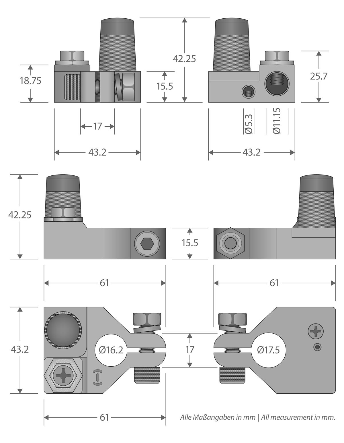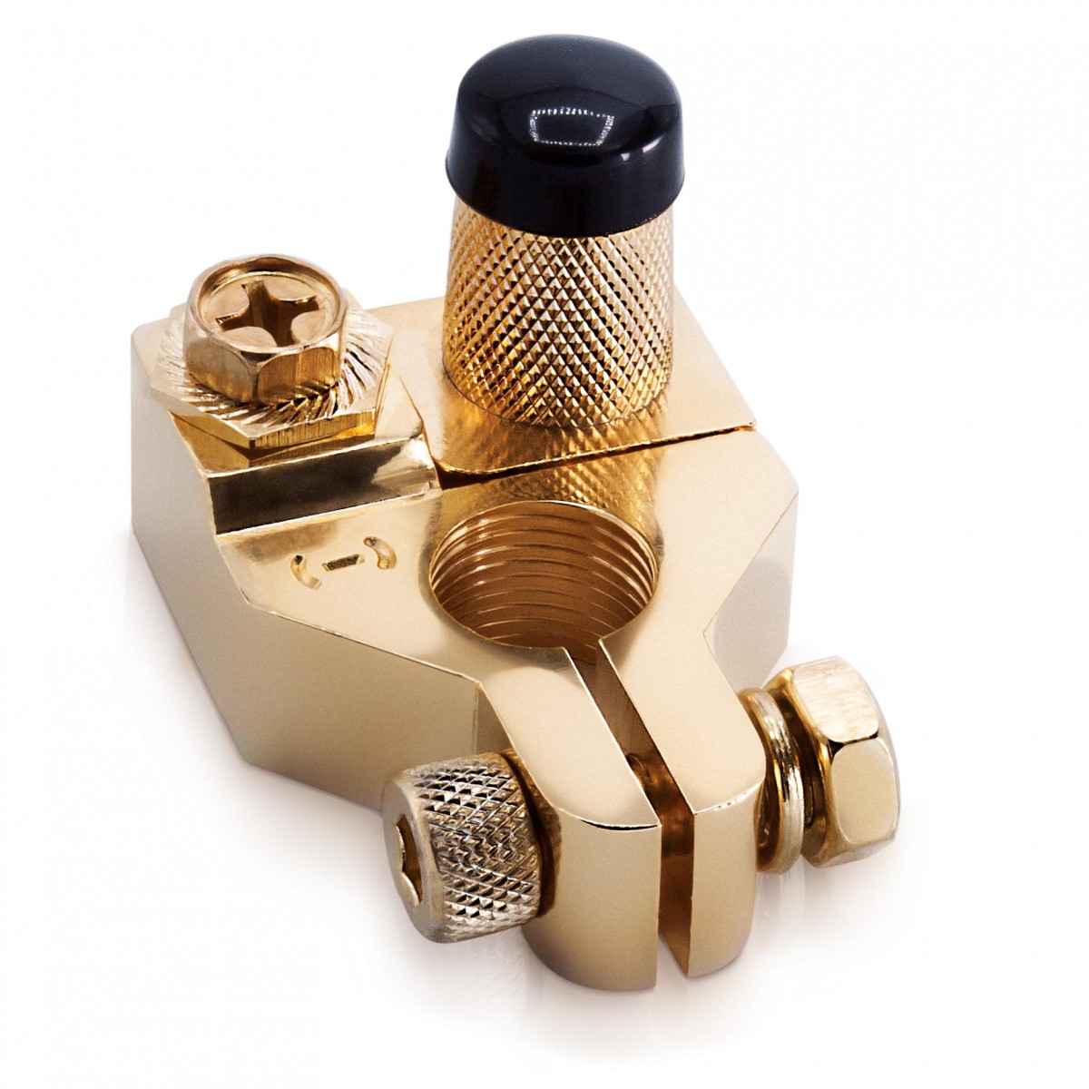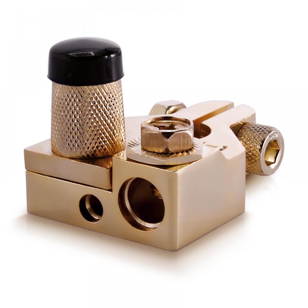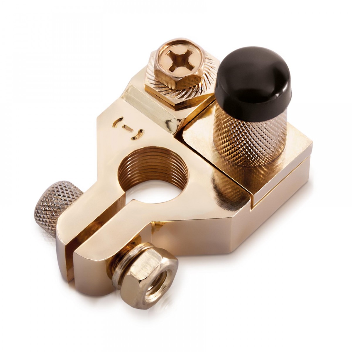 При тази клема оригиналните кабели остават непроменени. Преки изходи за 1 x 10 mm² и 1 x 35 mm² плюс винт за допълнително ухо, напр. за кабел 50 mm². Позлатена с 24-каратово злато, размери: 61 x 43 x 40 mm. Лесен монтаж - след като изключите оригиналната клема от акумулатора и поставите клемата BKS, върху щифта на клемата BKS отново поставете оригиналната клема. Предимството е възможността за свързване на захранващ кабел с голямо сечение без намеса в оригиналната електроинсталация на автомобила. Всички RCA конектори и фиксирани терминали имат утвърдено покритие Sinuslive "Goldline". Това не само изглежда луксозно, но и позволява години използване на висококачествени електрически контакти.
