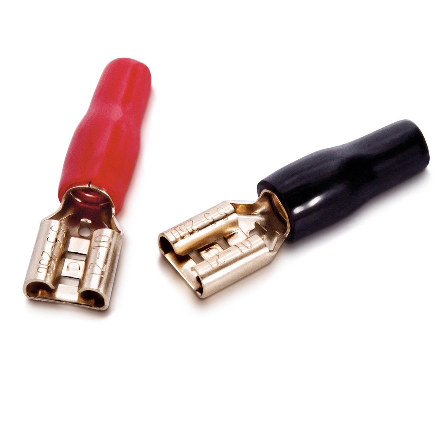 Комплект Faston конектори за високоговорители с размер 6,3 mm. В комплекта ще намерите 20 броя конектори (10 червени и 10 черни втулки). Конекторите са позлатени с 24-каратово злато. За кабел с напречно сечение 6 mm².