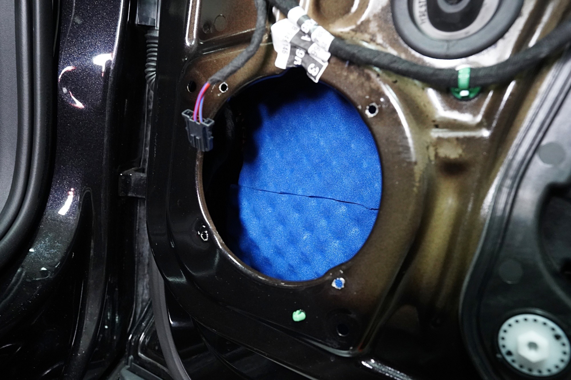 Вид на инсталациятаVýměna továrních reproduktorů ve předních a zadních dveřích