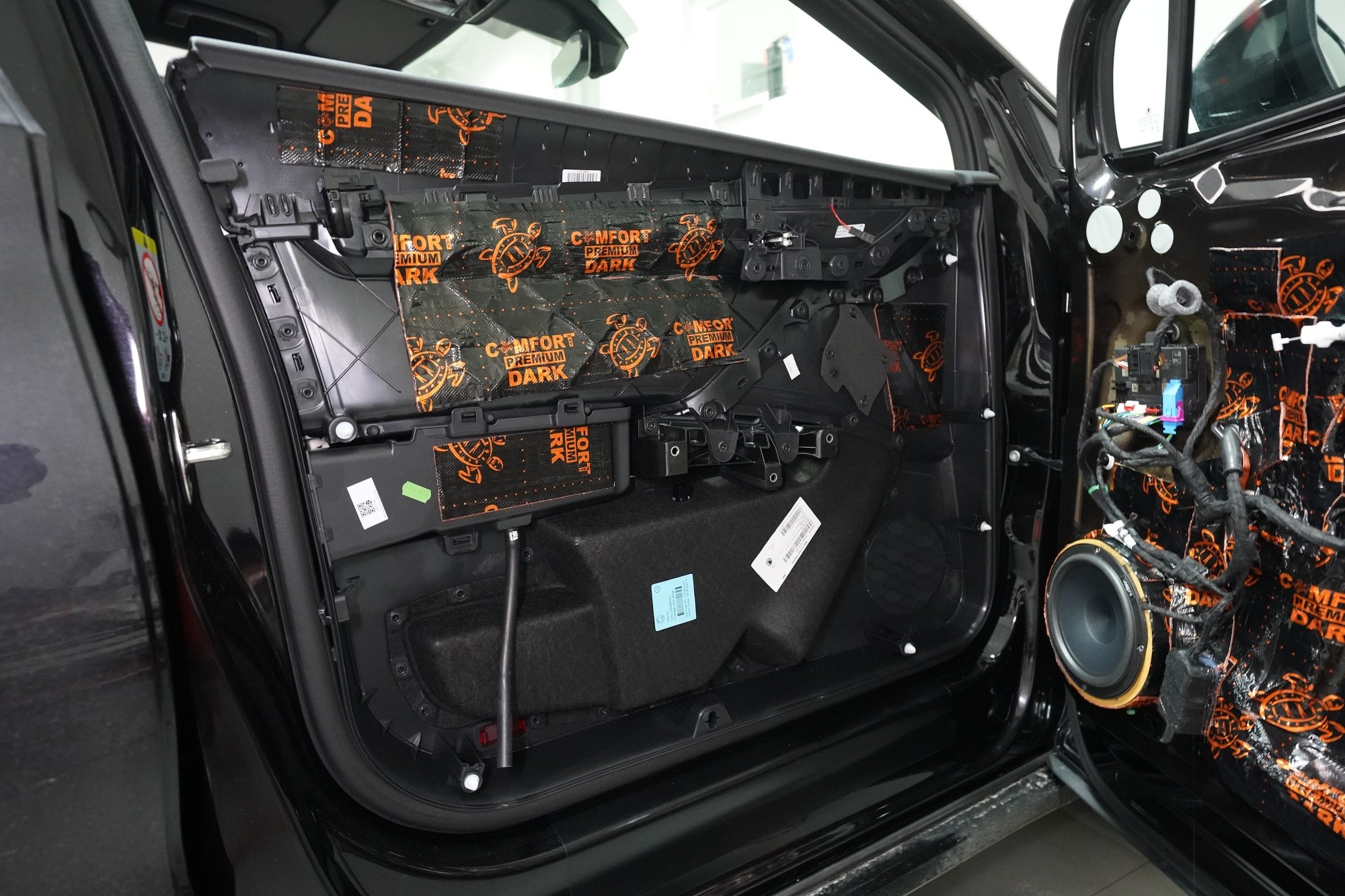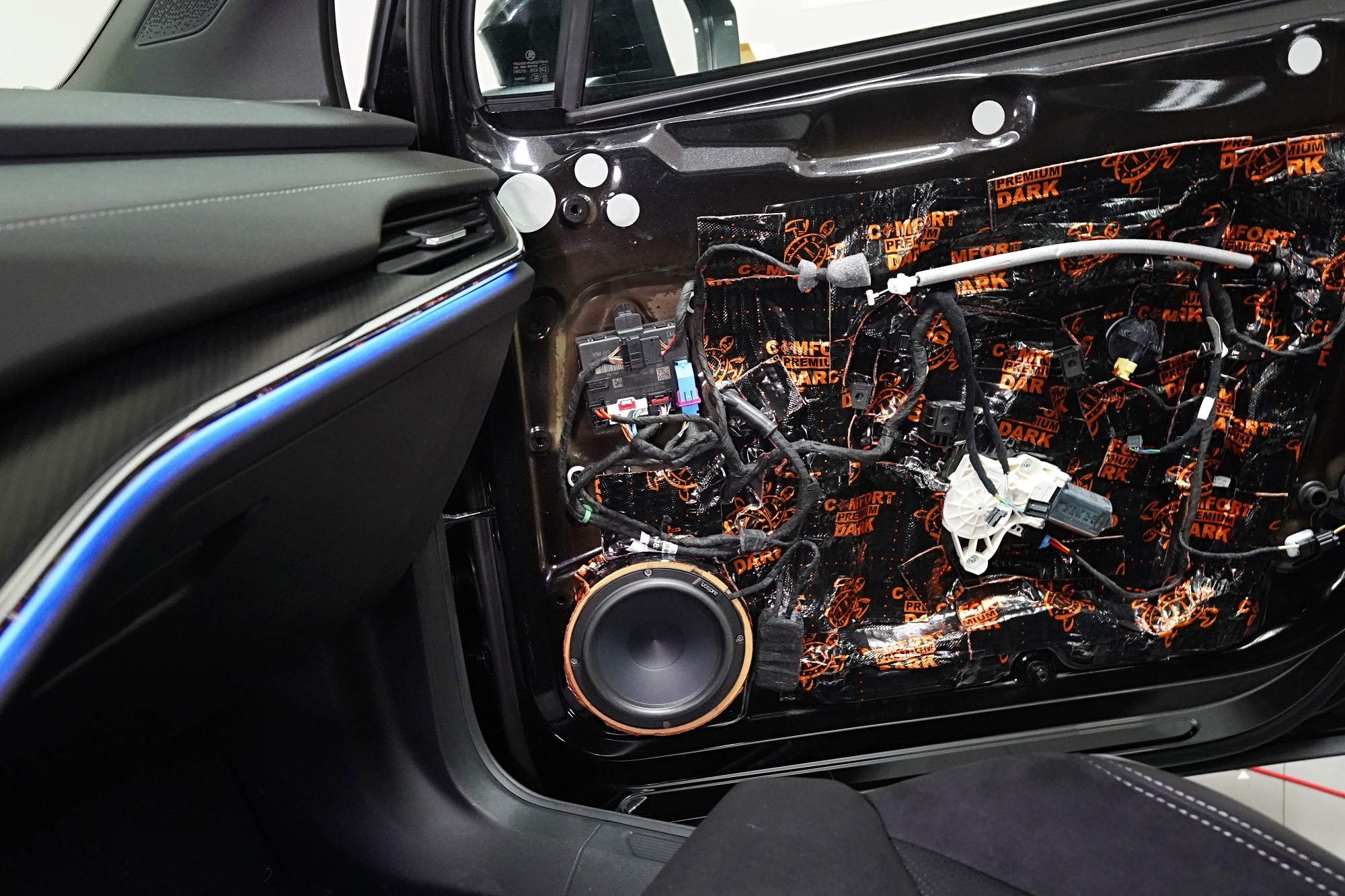 Възможност за смяна на говорителите в автомобил Škoda Enyaq. Впечатлението от нов автомобил може много бързо да бъде развалено от звуковата му инсталация. Това е случаят и с Škoda Enyaq със заводската аудио система. Най-достъпният и най-лесният начин за подобряване на звука е смяната на заводските говорители и, разбира се, шумоизолацията на вратите. За такива цели е необходимо да се избират говорители с висока чувствителност, така че фабричното радио със слаб усилвател да може да се справи с тях. С удоволствие за такива монтажи инсталираме компонентни говорители на италианския производител Audison, които отговарят на всички изброени параметри и допълнително предлагат много качествен звук. Поради чувствителността им над 92 dB говорителите са подходящи за свързване към радио, което им осигурява достатъчна мощност. Посочените говорители сме инсталирали в предните и задните врати на този автомобил, като сме запазили оригиналното местоположение на фабричните говорители. Монтажът естествено няма никакъв ефект върху гаранцията на автомобила и собственикът вече може да се наслаждава на значително подобрен звук с богати детайли и подобрена динамика. Това допринася и внимателната шумоизолация на вратите с премиум материали Comfortmat.