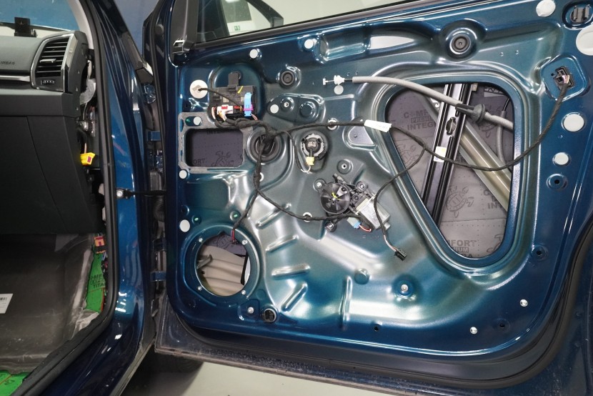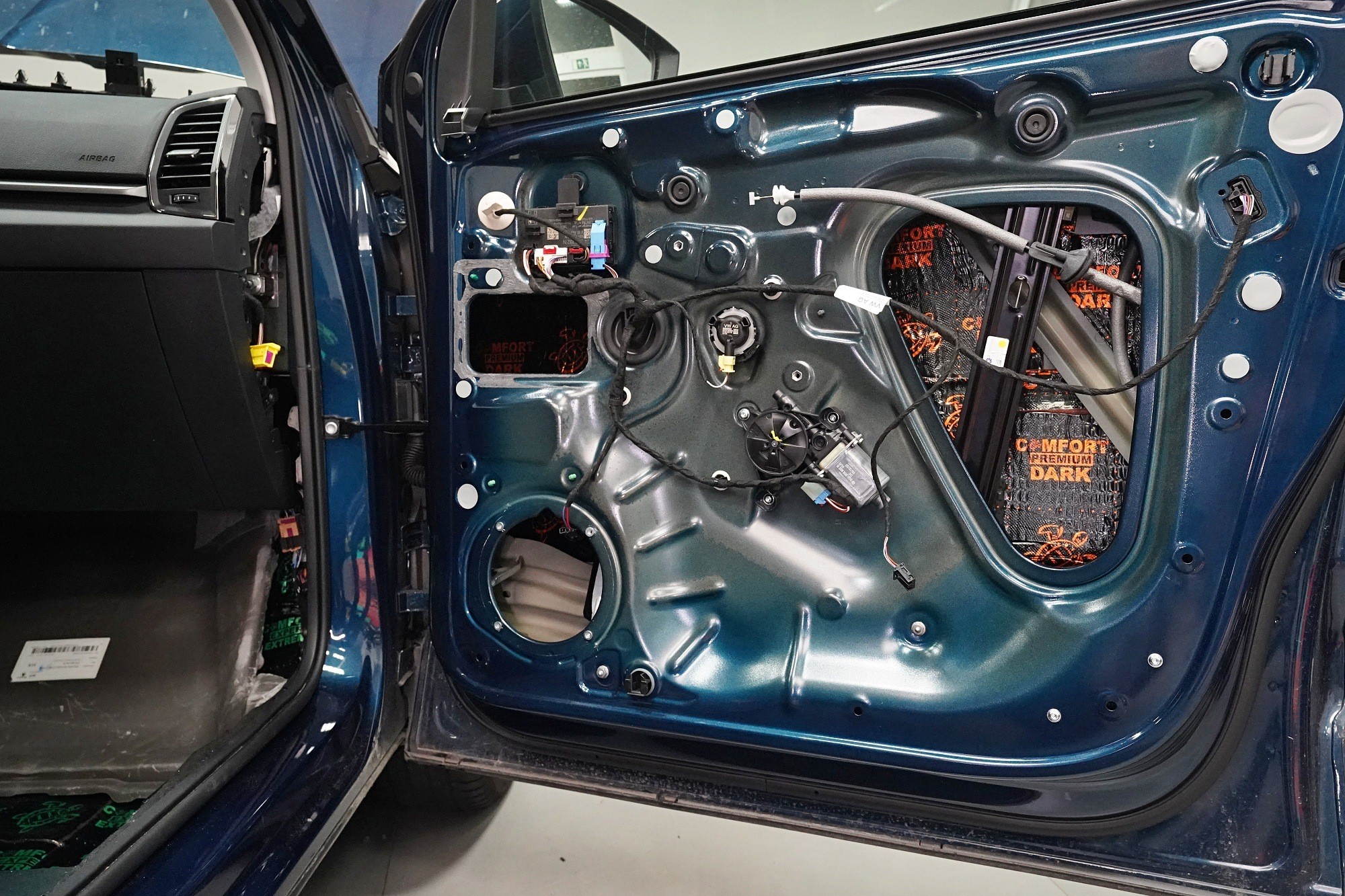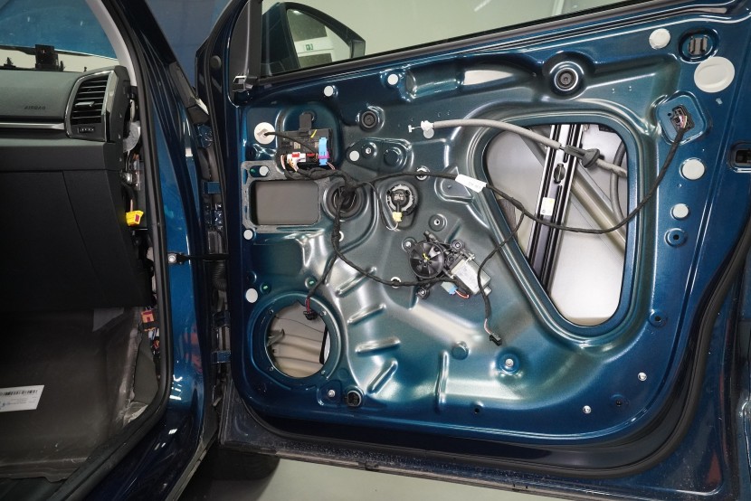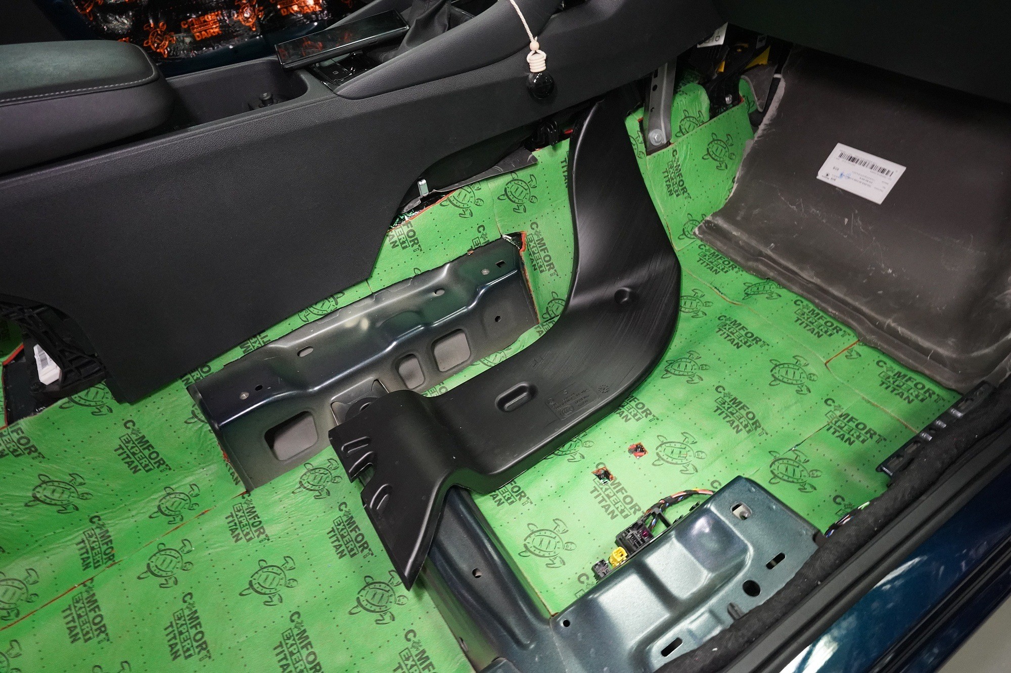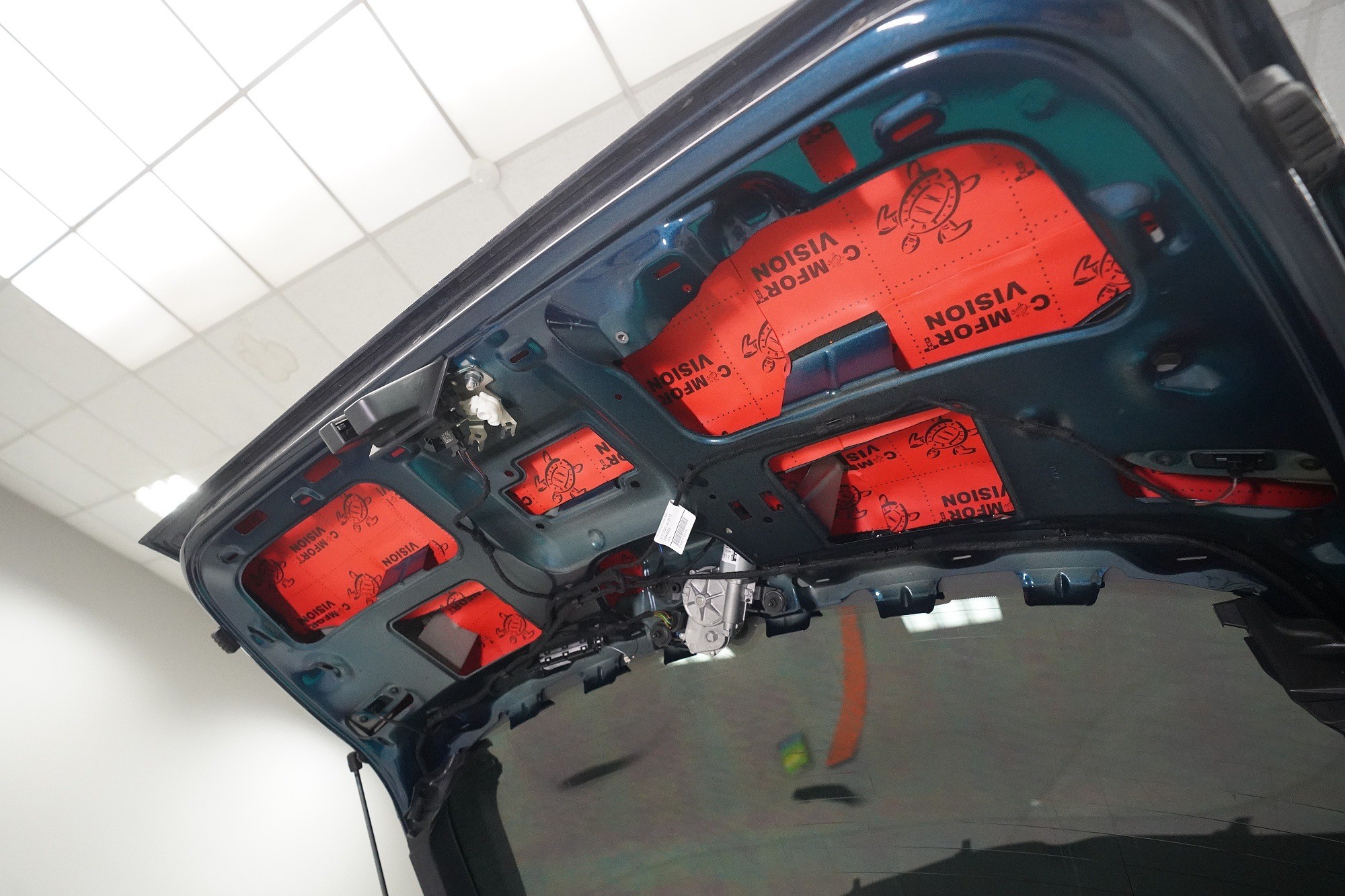 Шумоизолация на много популярен чешки SUV Škoda Karoq. Наследникът на Škoda Yeti се отличава с просторен и променлив интериор, качествена изработка, както и комфортно окачване и икономични двигатели. Ние обаче ще разгледаме заводската звукова изолация. И тук, за съжаление, отново преобладава разочарованието. Голи ламарини с минимална защита срещу вибрации и звукова изолация практически само под формата на гумено покритие в предната част на пода. С увеличаване на скоростта започва да се проявява шум от предните и задни гуми, шум от двигателя и трансмисията, както и околен пътен и аеродинамичен шум. Собственикът реши да сложи край на това състояние и се свърза с нас с молба за корекция. Съгласихме се на нашия пакет шумоизолация Premium Plus, който освен покрива включва всички важни области на автомобила. Конкретно шумоизолираме предни, задни и пета врата, пода, багажното отделение, задните арки и капака. В сравнение с класическия пакет Premium избираме по-ефективни и по-плътни материали и повече слоеве, със специално внимание към пода и задните арки на автомобила. Именно тези области са най-силно изложени на шум и е необходимо да се използват много ефективни материали. За шумоизолацията работят едновременно трима наши техници, които успяват да извършат монтажа в рамките на 1 работен ден.