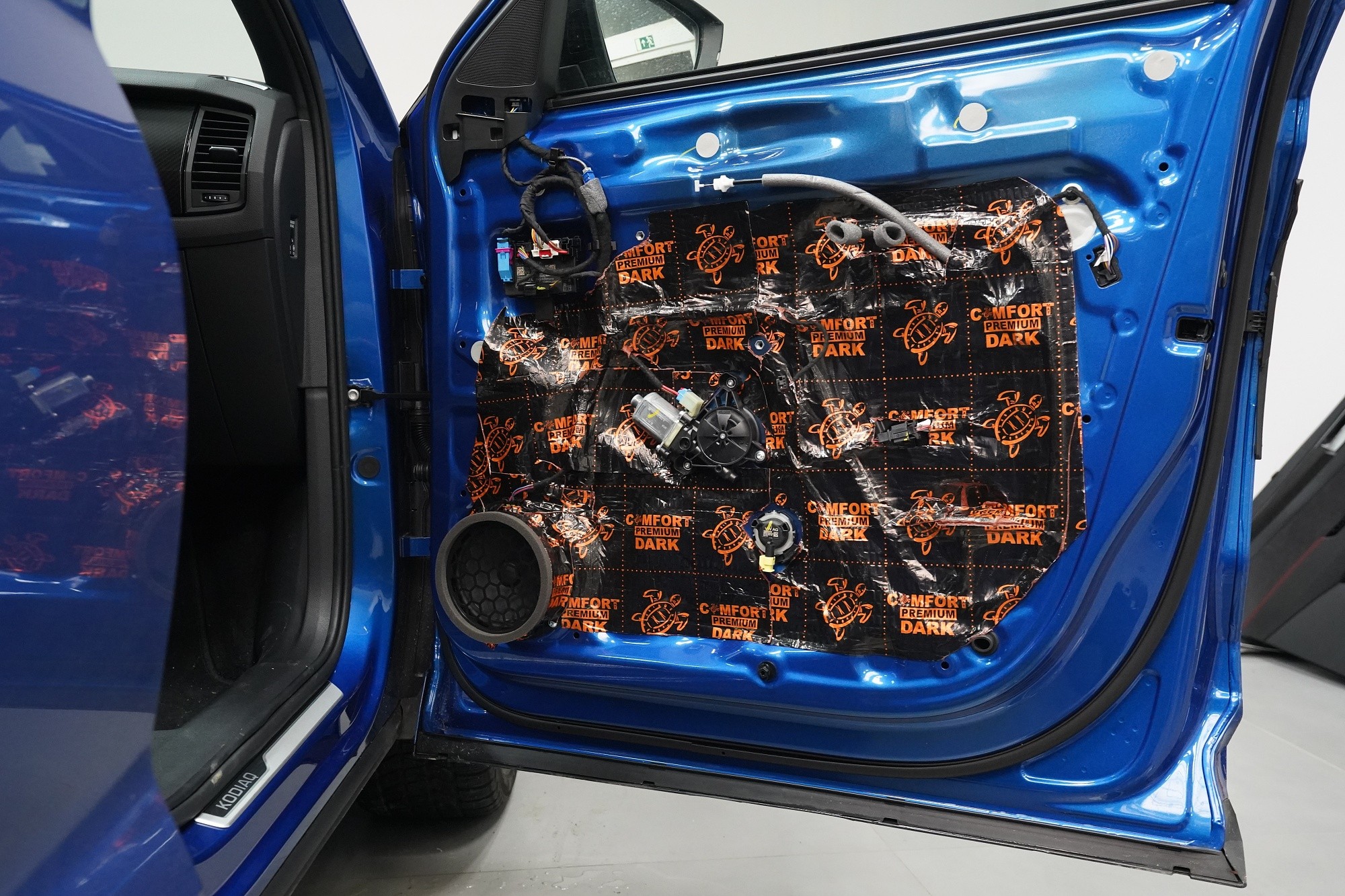Основна шумоизолация на автомобил Škoda Kodiaq. Нашият клиент особенно критикуваше шума от предните и задните колела, който може да бъде сравнително лесно отстранен чрез шумоизолация на тези зони. С клиента се договорихме за основна шумоизолация, в рамките на която ще се фокусираме върху предните и задните врати, предните подкалници, багажното отделение включително задните подкалници и предния капак. Въпреки че не препоръчваме на нашите клиенти да пропускат пода, винаги се стремим да намерим решение, което е компромис между цена, ефективност и разбира се и тегло. Подът може допълнително да бъде довършен по-късно. Всички избрани зони шумоизолираме с премиум мембранни материали Comfortmat и монтажът разбира се ще бъде извършен в рамките на един работен ден. Повече информация можете да намерите в нашия фоторепортаж.Показване на продуктиСкриване на продукти