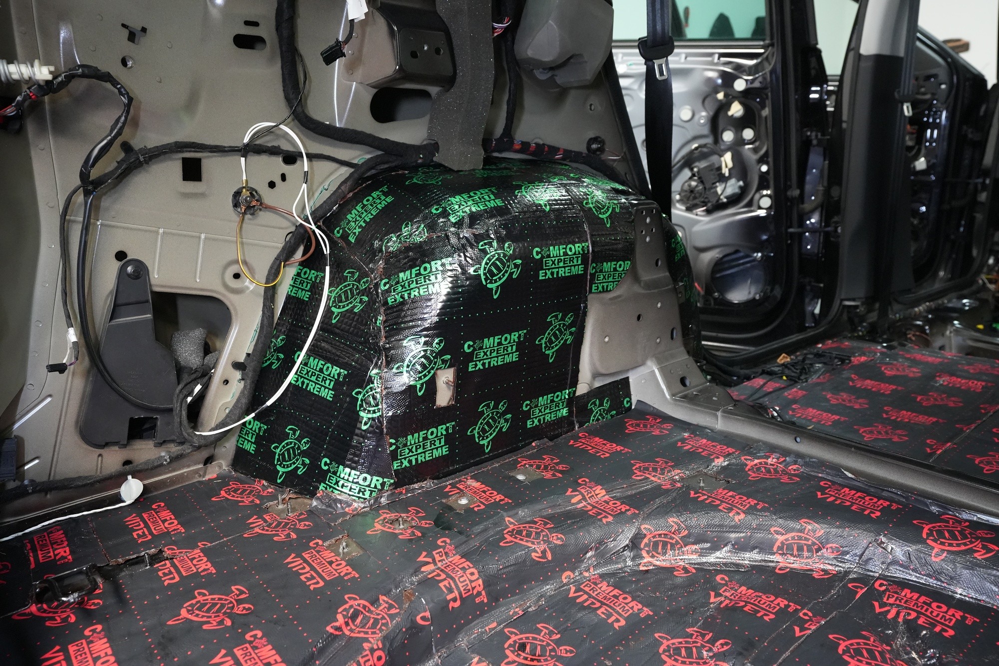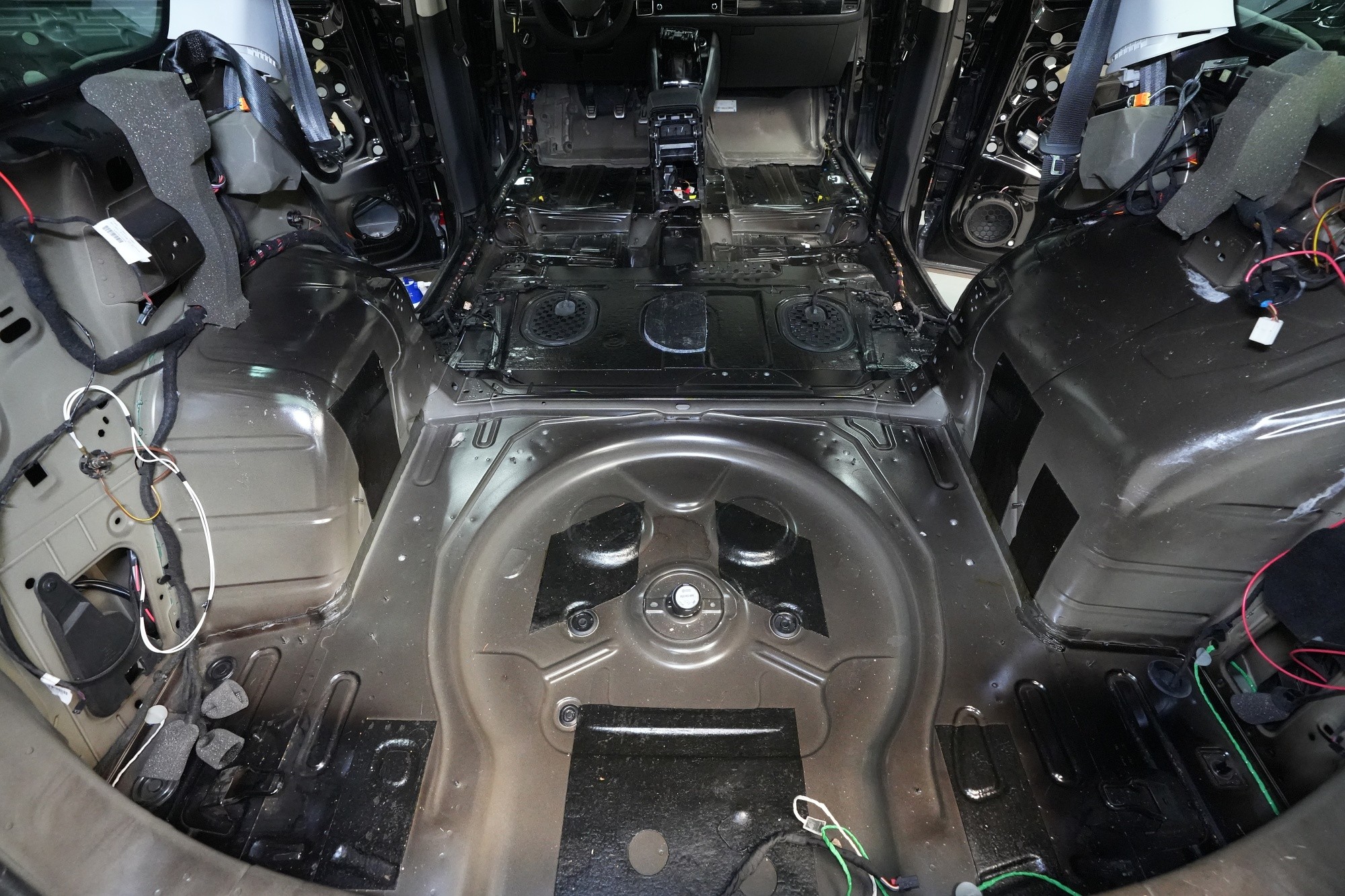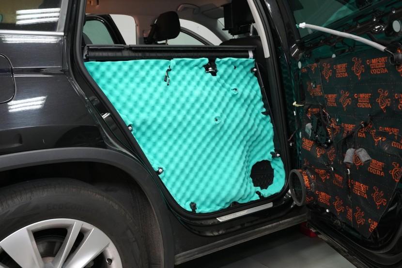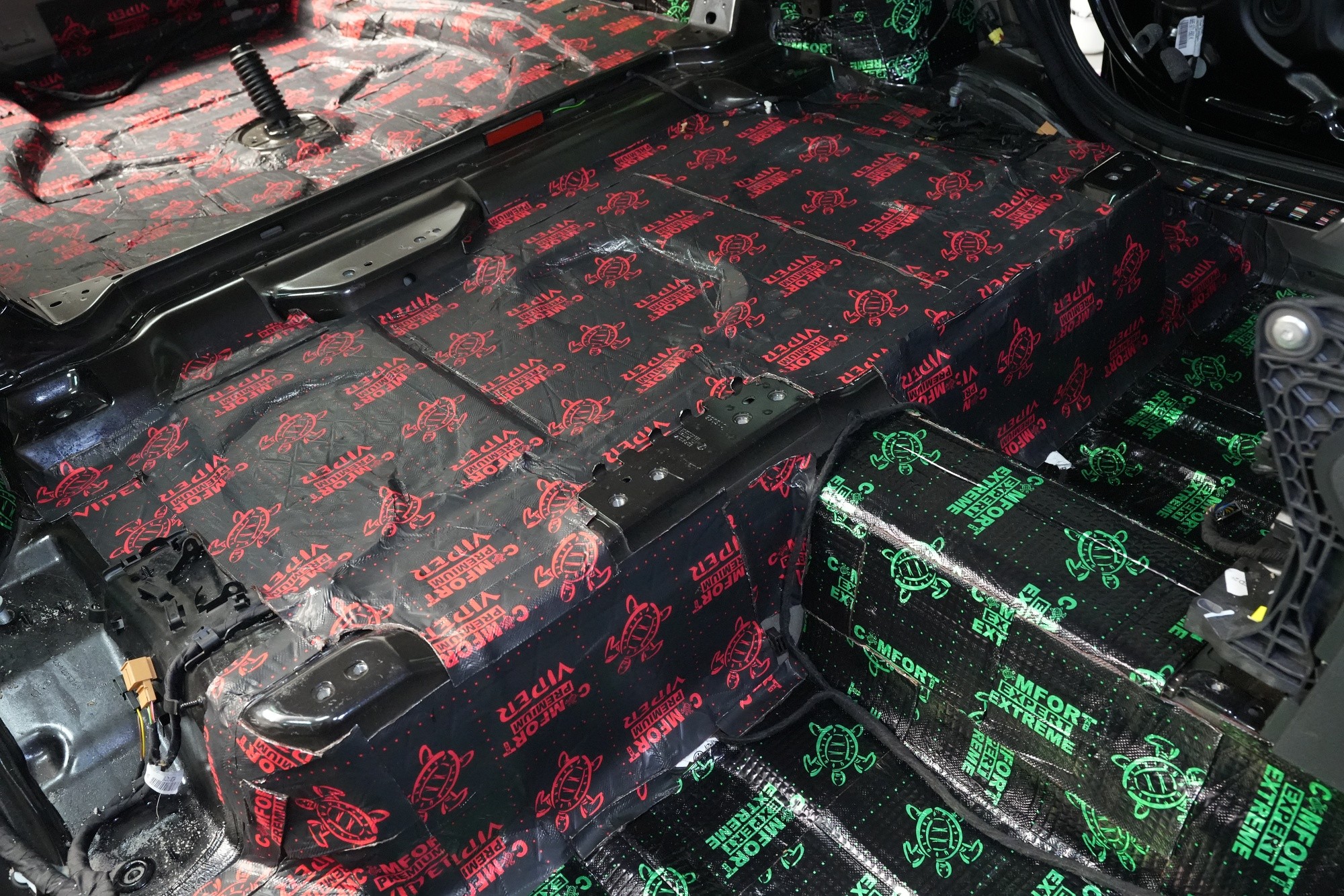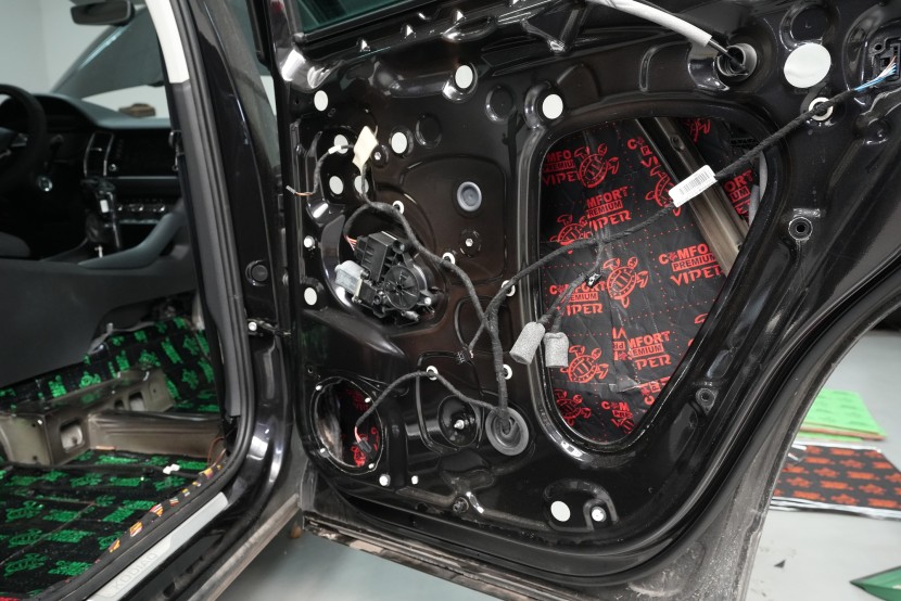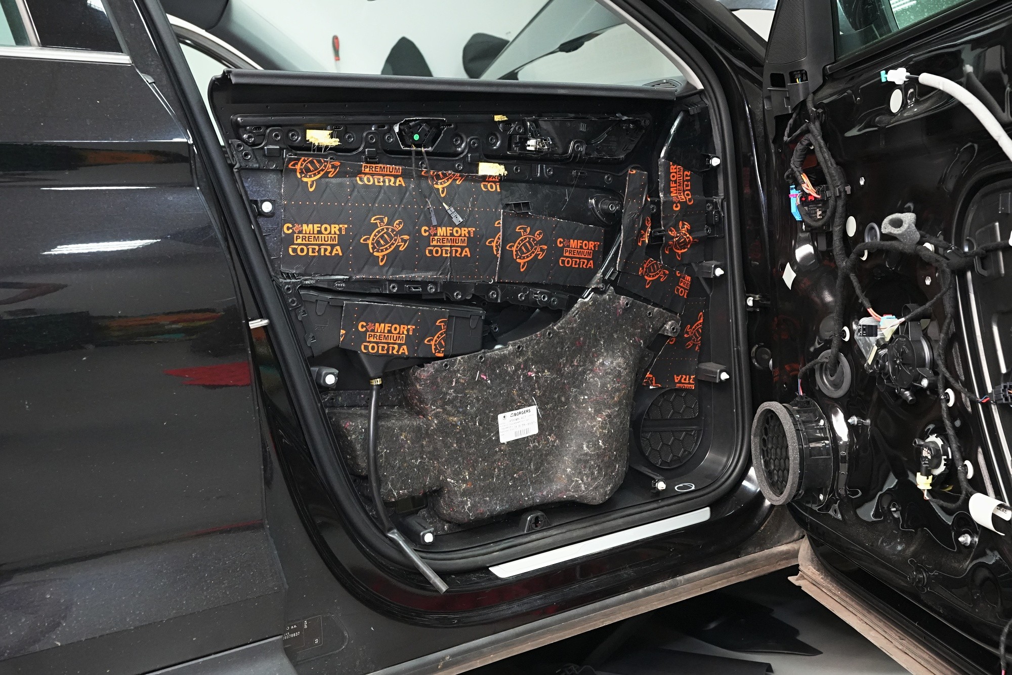 Шумоизолация на автомобила Škoda Kodiaq в рамките на нашия най-ефективен пакет за шумоизолация Expert Plus. Инсталация на шумоизолация за Škoda Kodiaq вече сме публикували на уебсайта многократно, но този път включва всички най-нови премиум материали Comfortmat и решихме да ги покажем всички. Задачата от нашия клиент беше ясна — максимално обезшумяване на автомобила и премахване на всички източници на вибрации и шум. С собственика се договорихме за нашия най-ефективен пакет за шумоизолация Expert Plus. В сравнение с класическия пакет Expert избираме по-ефективни и по-дебели материали и повече слоеве, съсредоточени предимно върху пода и задните калници на автомобила. Конкретно шумоизолираме предните, задните и петите врати, пода, багажното отделение, предните и задните вътрешни калници, покрива, таблото и капака. Всички важни зони на автомобила са шумоизолирани с модерни двуслойни материали и в резултат са приложени четири слоя шумоизолация с различни свойства. На шумоизолацията работят едновременно четирима наши техници, които успяват да монтират през 1 работен ден. Повече информация ще намерите в нашия подробен фоторепортаж.
