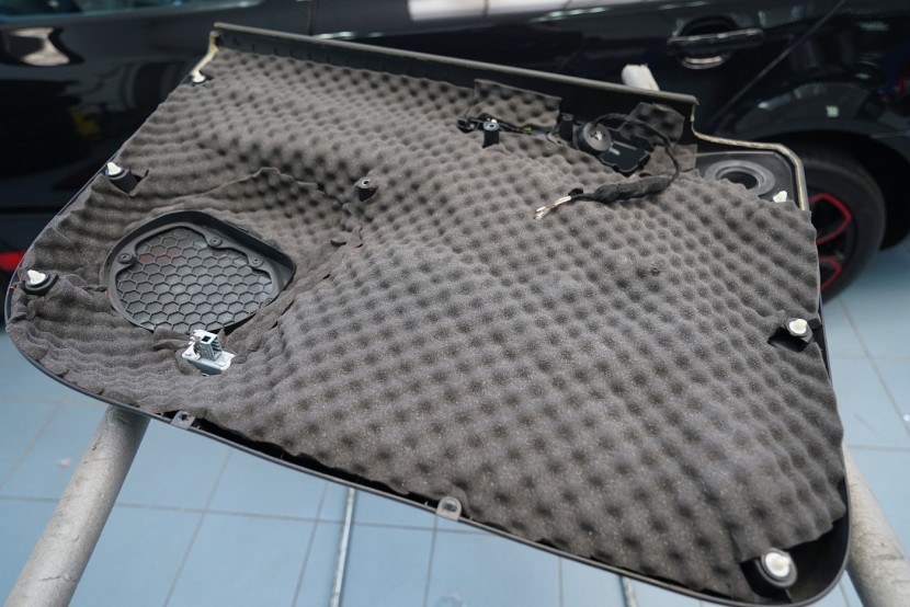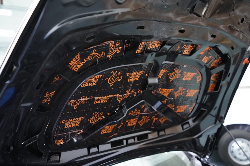 Капака шумоизолираме в два слоя – антивибрационен материал Comfortmat Dark D2 върху листа на капака и след това противоп шумен материал Comfortmat Vision. Той се нанася върху вътрешната страна на фабричния капаков декоративен панел, който връщаме обратно на място, като така запазваме оригиналния вид.