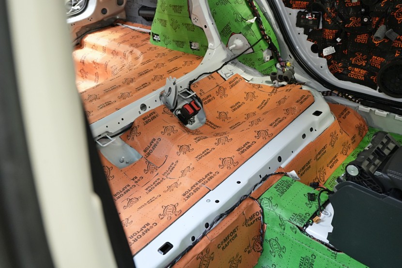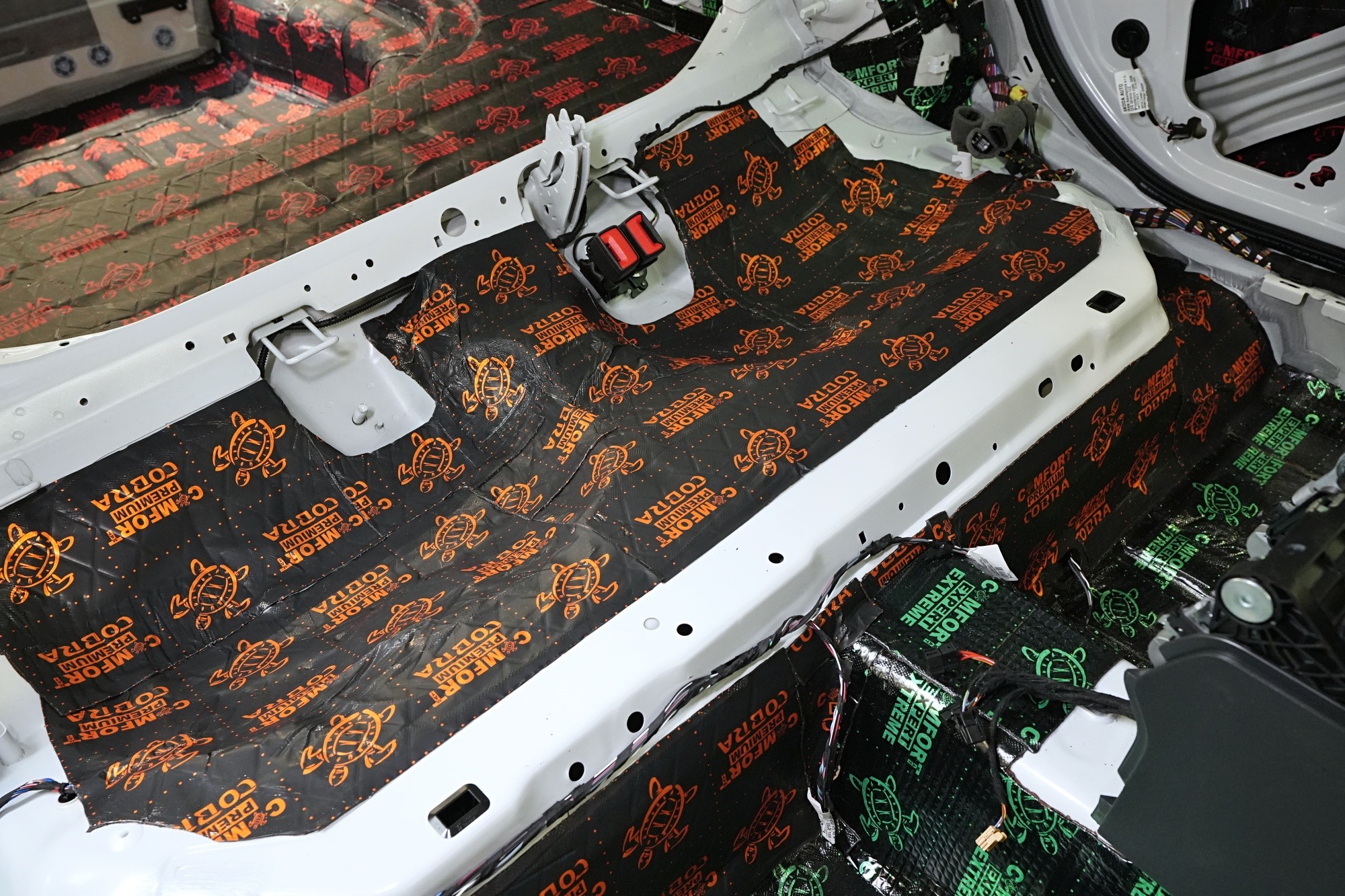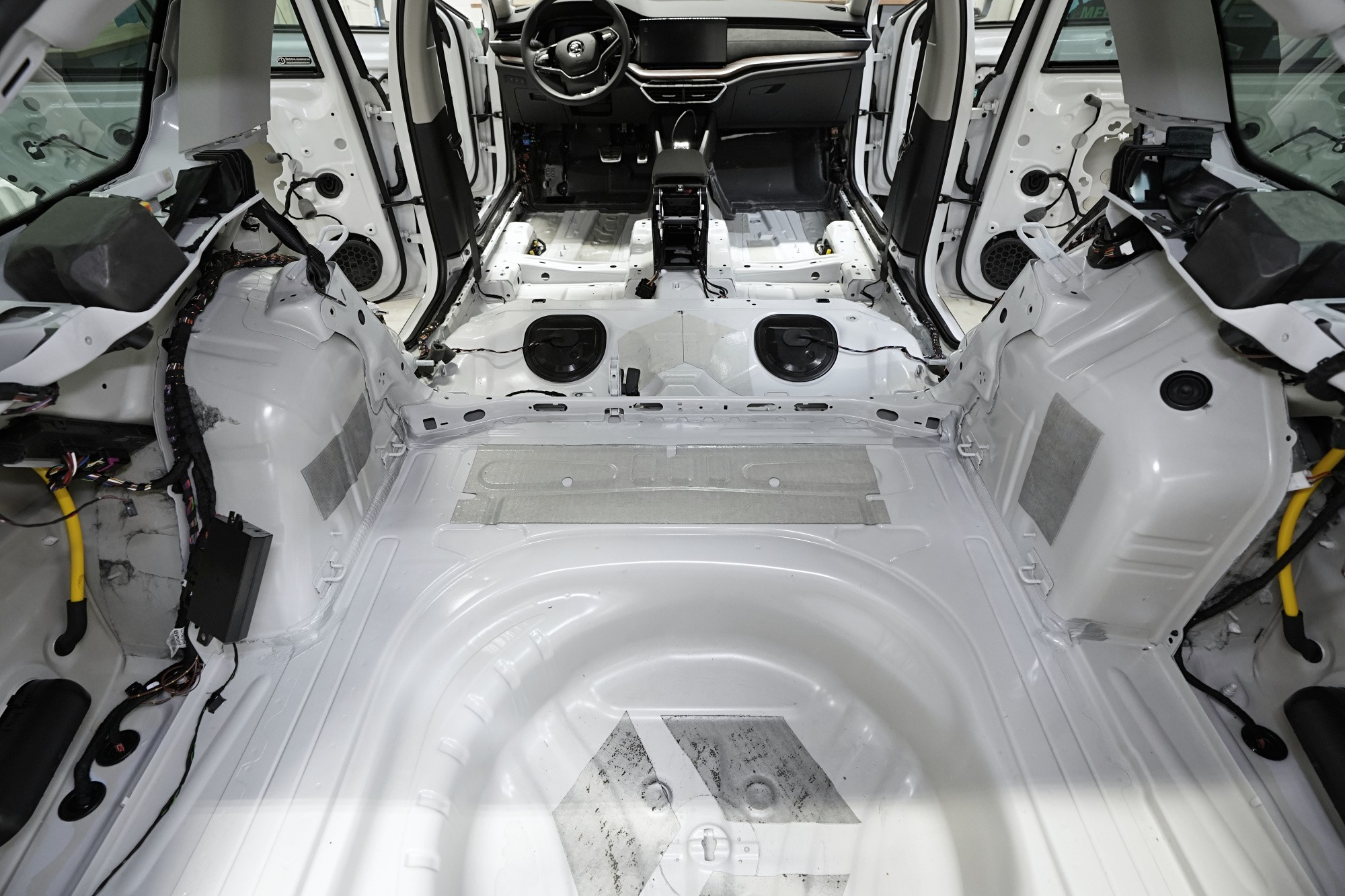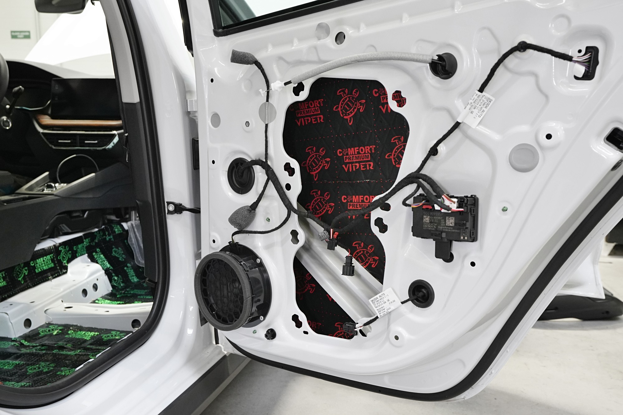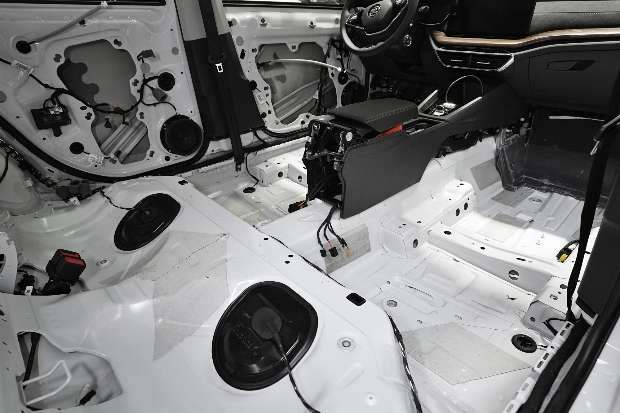 Шумоизолация на Škoda Octavia от четвърто поколение. Както при предишните модели, и „четворната октaвка“ постепенно се превръща в редовен гост в нашия сервиз. Голите метални панели на каросерията причиняват силни вибрации и шум, пренасян по въздуха, и не е чудно, че собственикът на този автомобил се обърна към нас. Правенето на автомобили тихи е нашата мисия и страст, и от тази Octavia ще направим премиум автомобил за един ден, поне що се отнася до звуковата изолация. Нашата задача е да предотвратим вибрациите и постоянното наличие на шум чрез приложение на първокласни антивибрационни и звукоизолационни материали Comfortmat в рамките на нашия пакет шумоизолация Premium Plus. Този пакет е насочен главно към шума, проникващ от предните и задни подкалници и пода, благодарение на най-ефективните материали от високата серия Comfortmat Expert. Затихихме всички ключови зони на автомобила, а именно предни, задни и пета врата, пода, багажното отделение включително задните подкалници, таблото и предните подкалници от страната на интериора. По шумоизолацията работят едновременно трима наши техници, които успяват монтажа в рамките на 1 работен ден. Повече информация можете да видите в нашия фоторепортаж.