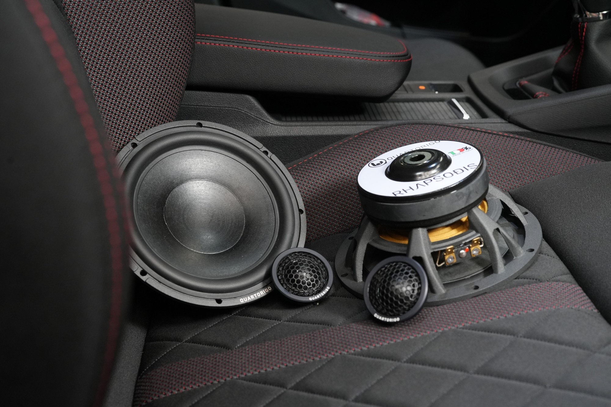 Този проект е показателен за такъв подход – фокусирахме се върху възможно най-качественото озвучаване в рамките на инсталацията на нови високоговорители, свързани към фабричната основна единица. Изборът падна върху компонентните високоговорители Rhapsodis от италианския производител Quartorigo, който дори в по-ниските си серии предлага изключително балансиран и естествен звук. Тези високоговорители се отличават с висока реална чувствителност, което ги прави идеално решение за директно свързване към фабричните автомобилни радиа без необходимост от външен усилвател. Клиентът получава осезаем скок в качеството на звука без необходимост от допълнителни инвестиции или промени в интериора. Rhapsodis предоставят приятна тоналност, отлична разбираемост на вокалите и изненадващо богат звук дори при по-ниски нива на сила на звука.