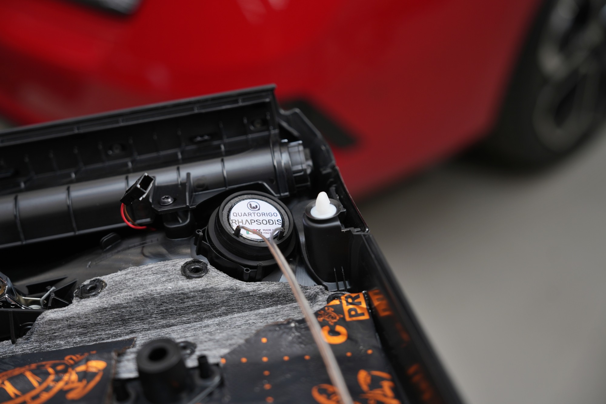 Част от инсталацията беше и внимателното заглушаване на вратите, което е ключово, за да могат високоговорителите да покажат пълния си потенциал. Правилно изпълненото обезшумяване намалява нежеланите вибрации, загубата на енергия на високоговорителя и преноса на околен шум, което подобрява динамиката и чистотата на звука. Такъв тип ъпгрейд препоръчваме на всеки, който търси реално подобрение на музикалното възпроизвеждане в своя автомобил, но не иска да изгражда цяла нова аудио система. Благодарение на своята чувствителност, изработка и настройка, Quartorigo Rhapsodis са идеалната входна врата към света на качественото слушане. И освен това – всяко парче от тези високоговорители носи гордото обозначение 100 % Made in Italy, което се усеща не само в прецизната изработка, но преди всичко в характера на самия звук.