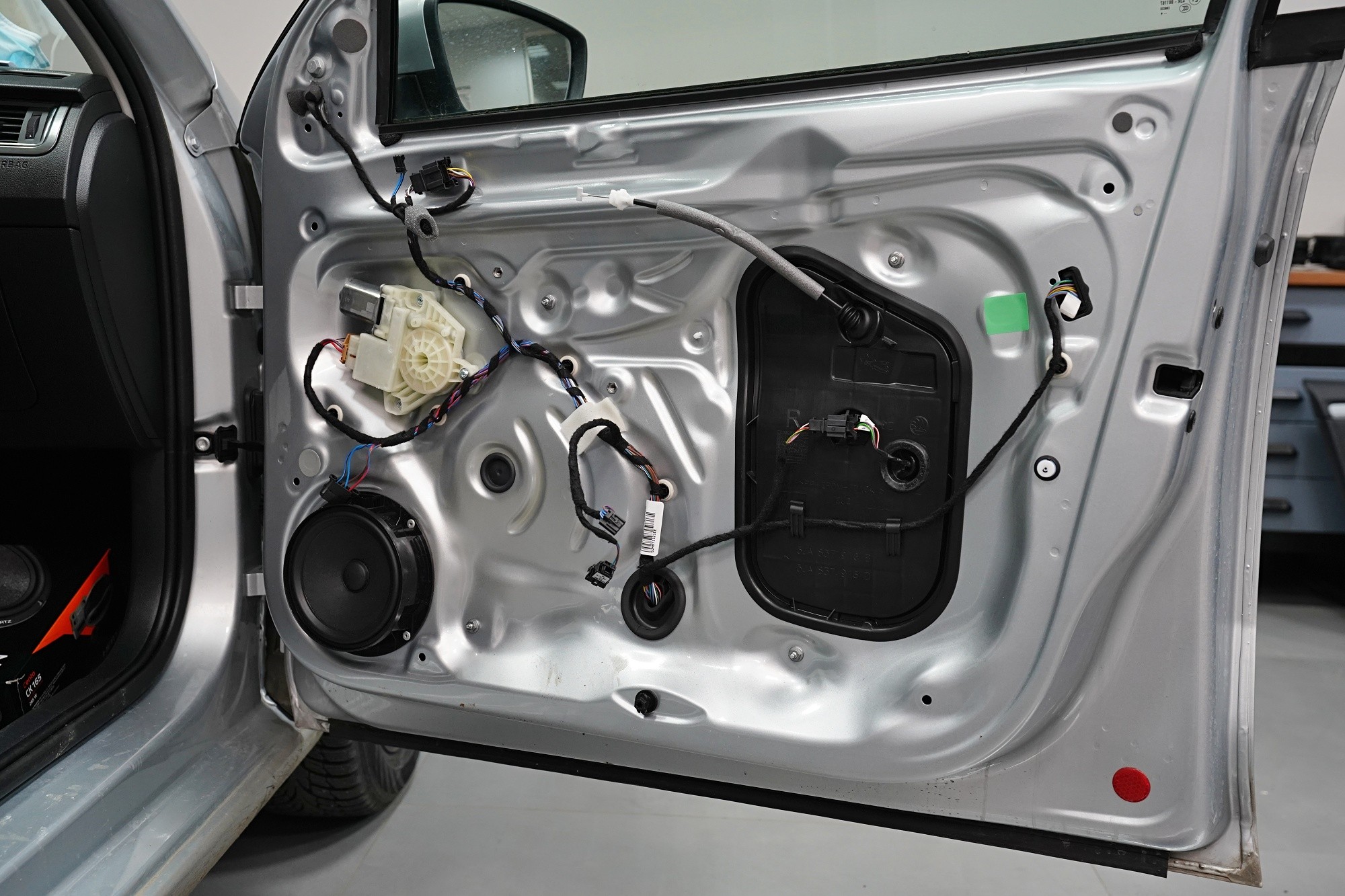 Вид на инсталациятаVýměna reproduktorů ve předních dveřích