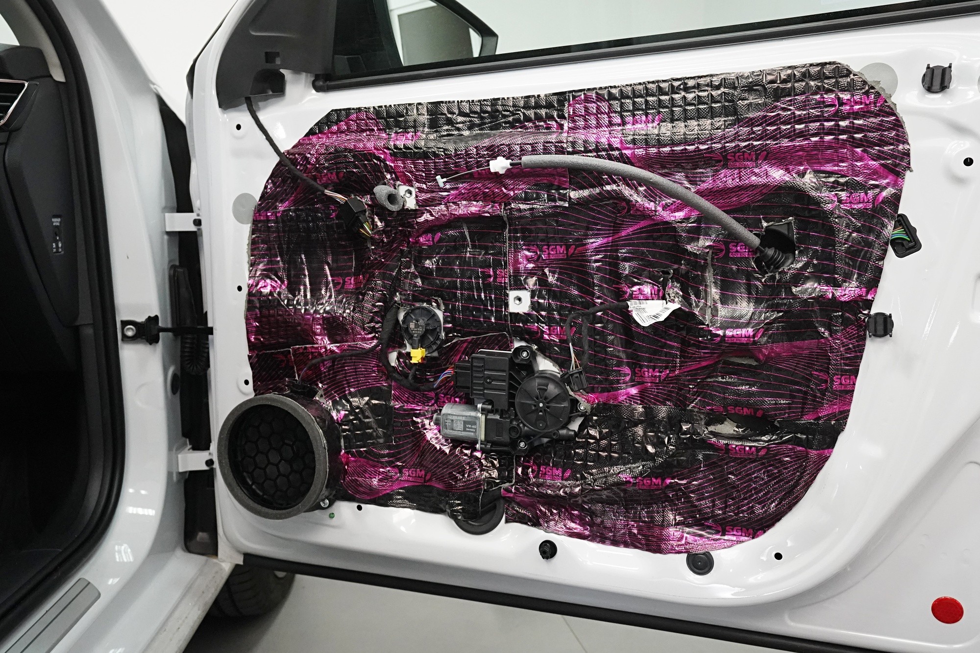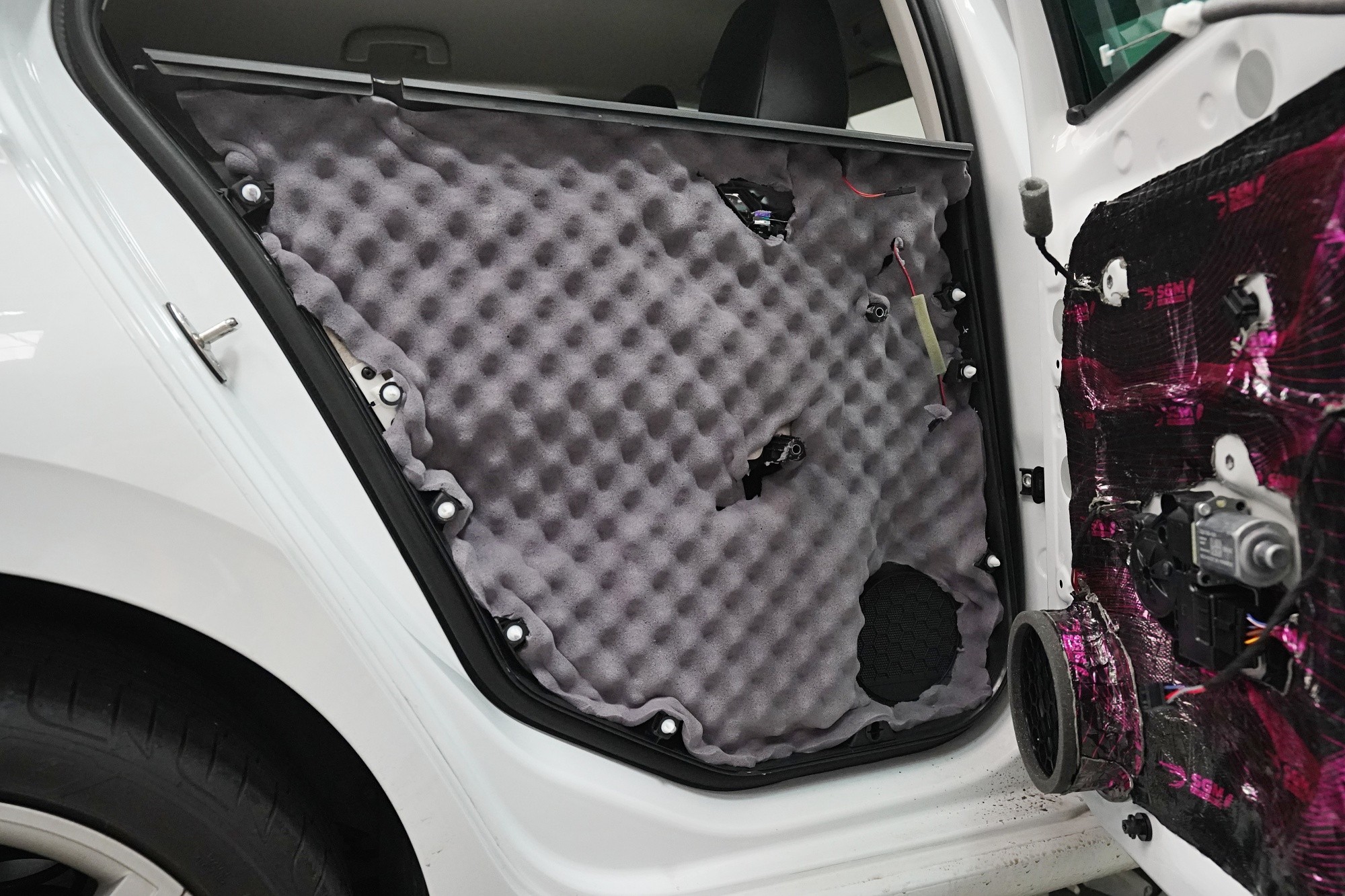 Базова звукоизолация на автомобил Škoda Scala. Неговият собственик се оплакваше основно от шума от предните и особено от задните гуми и от околния пътен шум, проникващ през вратите. Договорихме се да обезшумим тези най-проблемни части и конкретно обезшумяхме предните и задните врати, задните подкалници от външната страна и цялото багажно пространство, включително задните подкалници от вътрешната страна. За всички зони избрахме първокласни антивибрационни и звукоизолационни материали на руския производител SGM от най-високата моделна серия Prime, които позволяват максимално ефективно обезшумяване при приемливо тегло. По инсталацията работят двама наши техници, които ще приключат работата си в рамките на 1 работен ден. Повече информация ще намерите в нашия фоторепортаж.