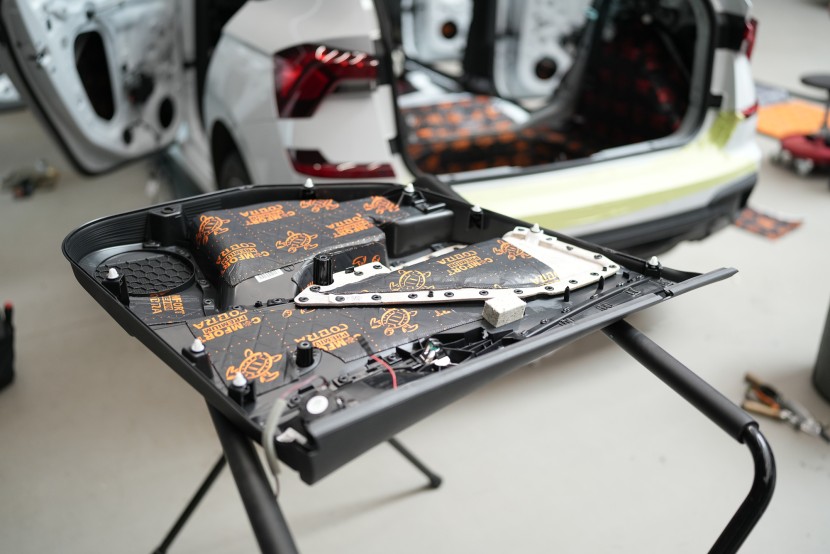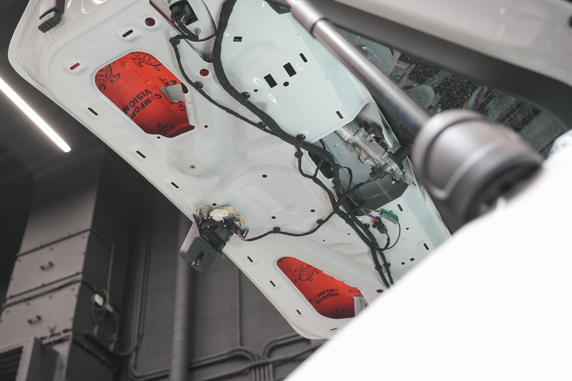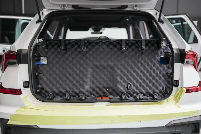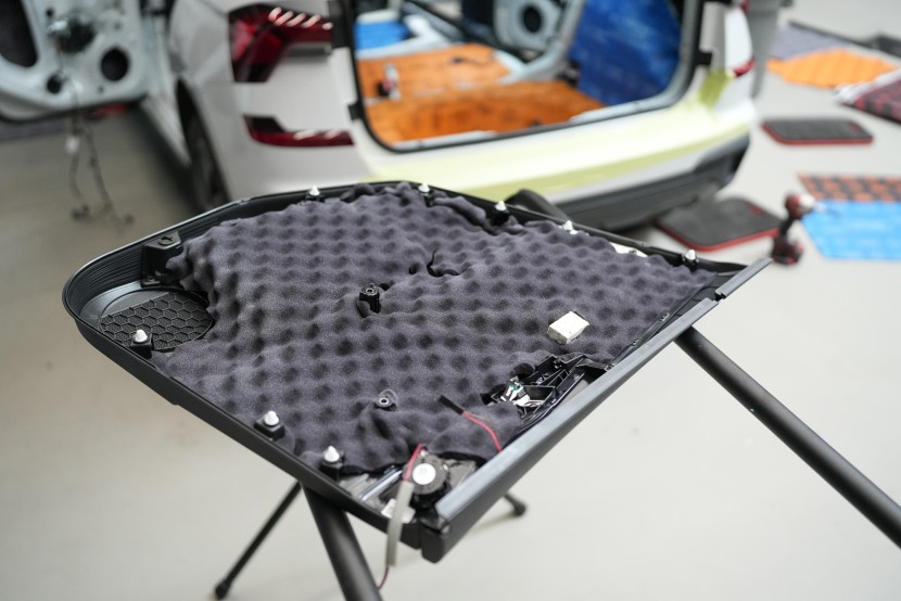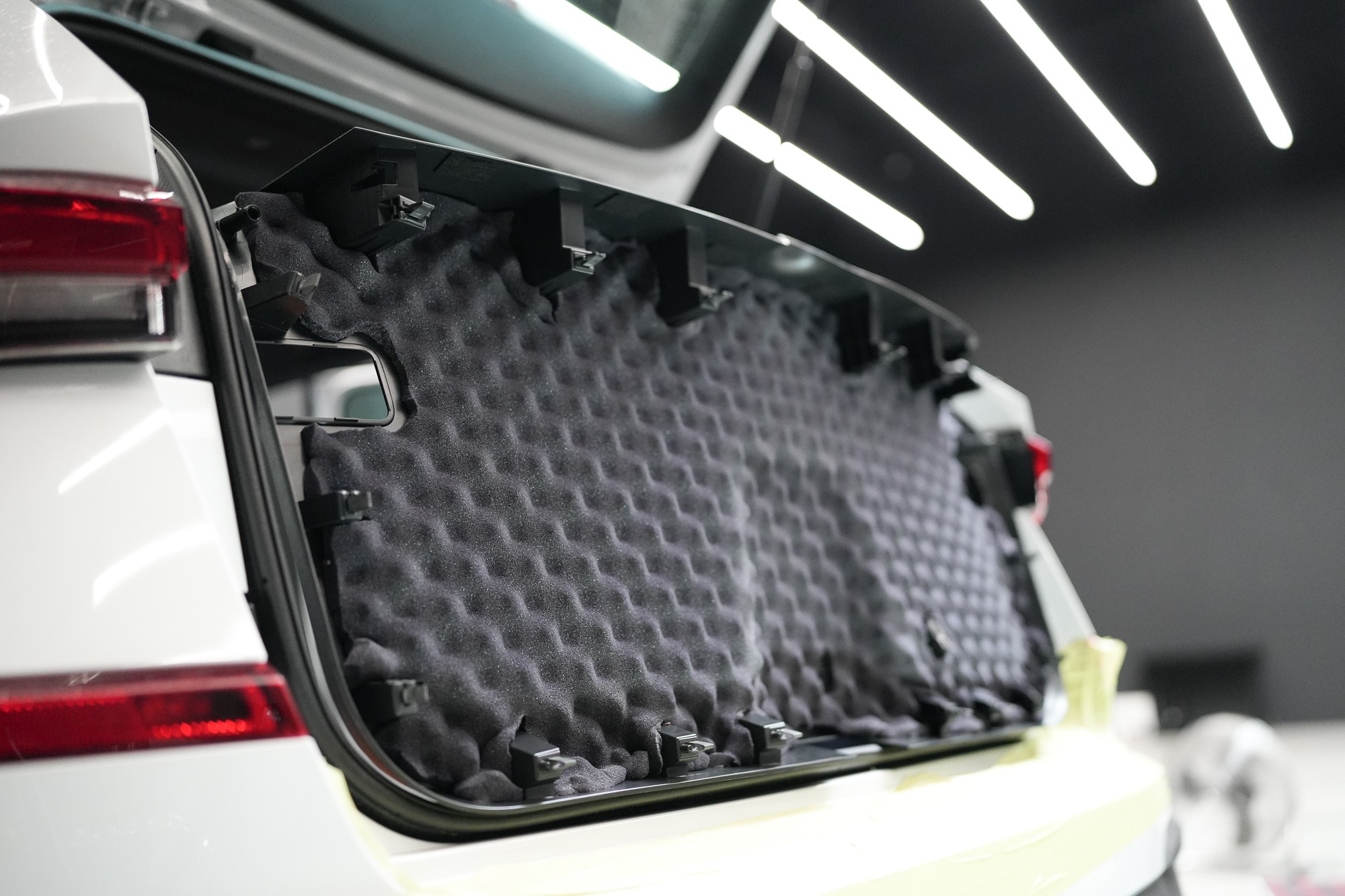 Montáž trvala jeden pracovní den a provedl ji náš čtyřčlenný tým. Výsledkem je znatelně tišší a klidnější interiér, který zvyšuje komfort jízdy na jakékoli vzdálenosti. Na základě měření z obdobných vozů přináší odhlučnění v balíčku Premium průměrné snížení hladiny hluku v kabině o 3 až 3,5 dB při dálniční rychlosti, což odpovídá více než dvojnásobnému snížení hluku v interiéru v porovnání se sériovým stavem. Rozdíl je patrný ihned – při dálniční jízdě i na nekvalitních površích působí vůz výrazně tišším a prémiovějším dojmem.