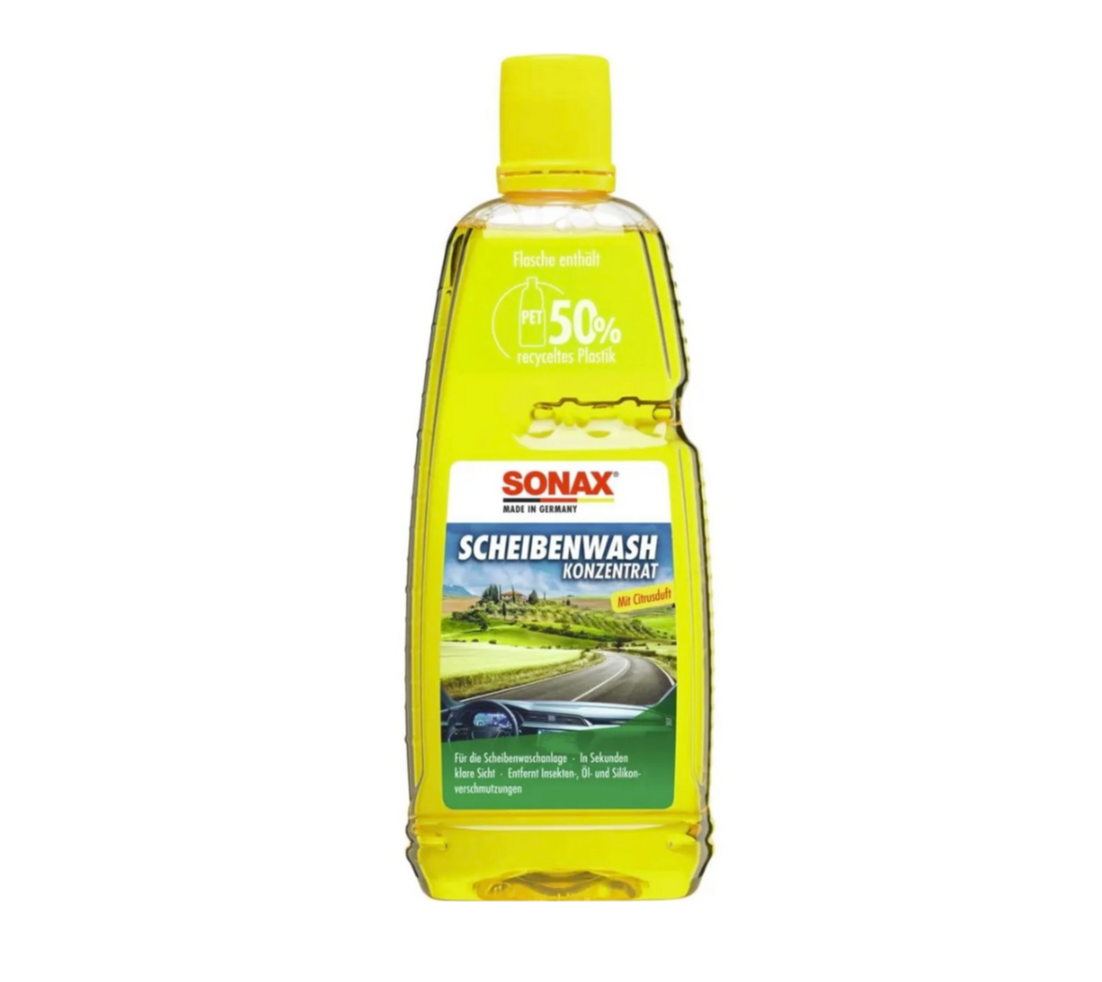 Sonax Scheiben Wash Konzentrat Citrus е специално разработен концентрат за системата за почистване на стъкла, който при правилно разреждане ефективно отстранява прах, насекоми, полени и леки замърсявания от предното и страничните стъкла на автомобила. Благодарение на цитрусовия аромат оставя приятен свеж мирис и същевременно осигурява ясен изглед без ивици, което повишава комфорта и безопасността при шофиране. Продуктът е предназначен за топлия сезон и позволява ефективно почистване на стъкла и фарове.