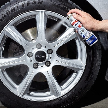 - Първо почистете джантите с помощта на SONAX XTREME почистващ препарат за джанти и оставете да изсъхнат напълно (не забравяйте да отстраните и цялата вода от канали или отвори на болтовете). \n\t