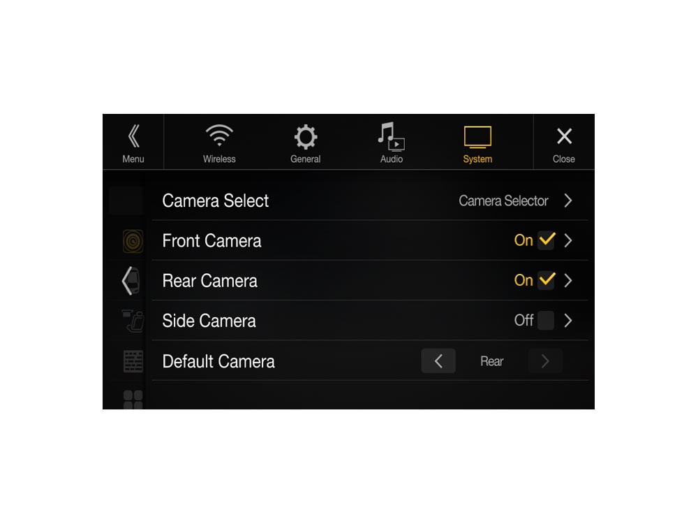 - Поддържа Alpine Multiview камери; можете да превключвате между до 4 различни изгледа на камерата - в зависимост от камерата: Panorama, Back, Corner и Top-view.