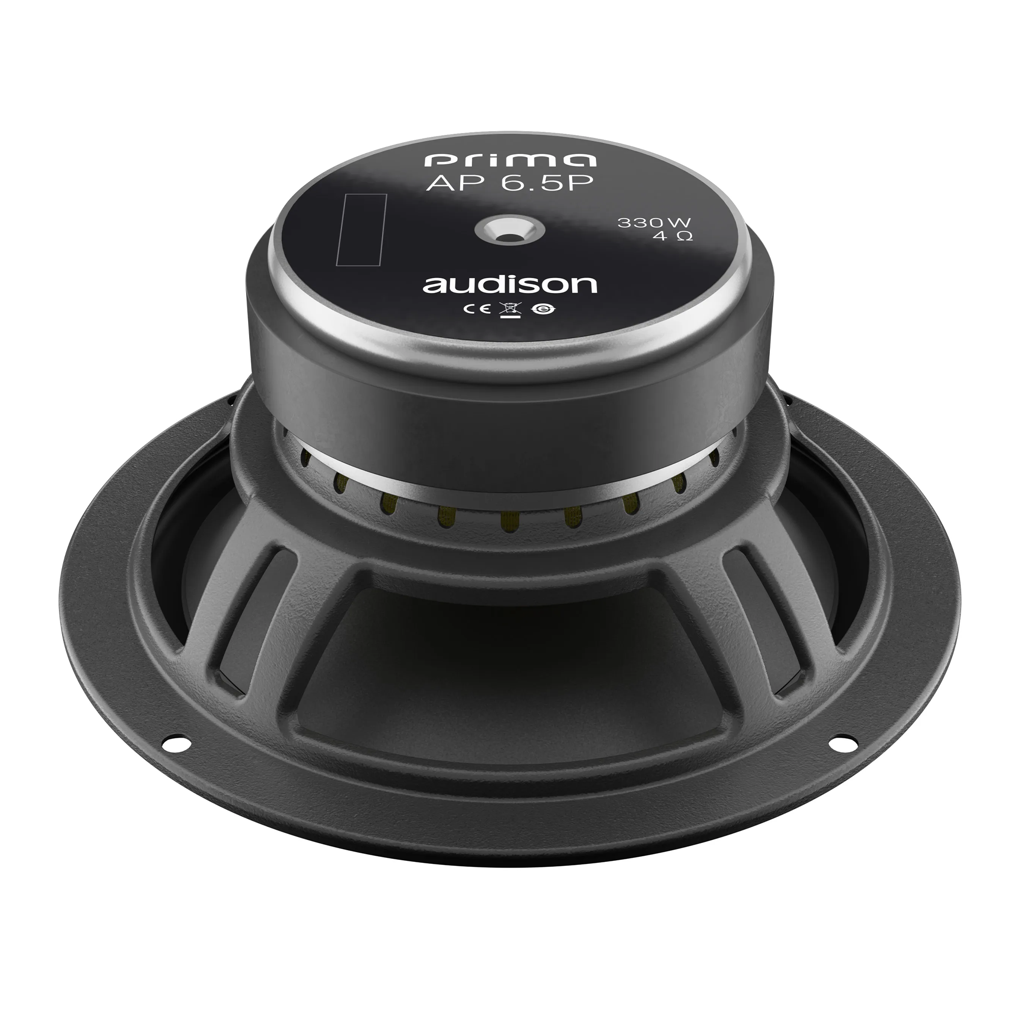 Средночестотните говорители AP 6.5P са проектирани да работят възможно най-добре в OEM монтаж, комбинирайки отлично управление на мощността и ефективност с много широк ход, за да поемат най-важните динамични върхове без каквато и да е компресия. Впечатляващата магнитна конструкция доставя енергията, необходима за перфектен контрол дори при крайни отклонения. Говорната бобина CCAW (Copper-Clad Aluminium Wire) (32 x 14 мм) управлява оптимално по-голямата приложена мощност. Кошът бе изцяло преработен чрез симулации, за да се намали съпротивлението при въздушния поток, като се запазят компактни размери за улеснен монтаж.