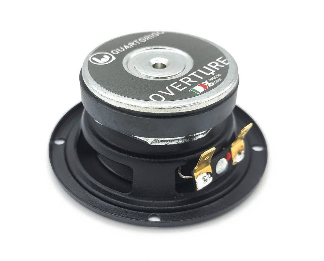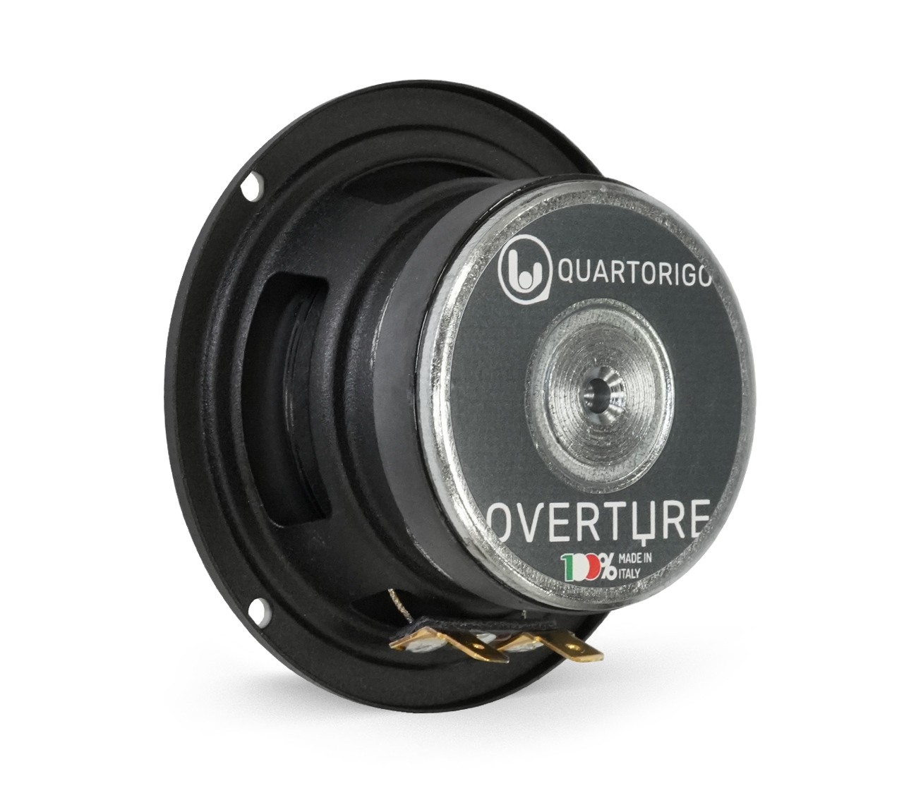 Серията Overture на Quartorigo е създадена, за да впечатли всички ентусиасти на качествения звук в повече от достъпна ценова категория. Overture, т.е. увертюра, представлява основните високоговорители от Quartorigo, които обаче са разработени за аудиофилски звук и изключително удоволствие от музиката. Инженерите на Quartorigo положиха всички възможни усилия, за да направят тези говорители така, че да не е необходимо да ги свързвате към усилвател и да се справят благодарение на високата чувствителност дори с по-слаба мощност от фабричните авторадия на модерните автомобили. Беше обърнато внимание и на OEM външния вид при инсталацията. Всичко останало е типично за Quartorigo с фокус върху изключително музикално преживяване. Хартиената мембрана на средночестотния говорител с водоустойчива обработка е отлична комбинация от лекота, твърдост и преди всичко вярност на звука. В тази ценова категория нетипично е и изпълнението на лятия корзин на средночестотния говорител. Той е изключително твърд, елиминира вибрациите и не се деформира толкова при движението на мембраната, както е при класическите стоманени кошове. Гаранция за високо качество и перфектна изработка осигурява международно признатата сертификация 100% Made in Italy.