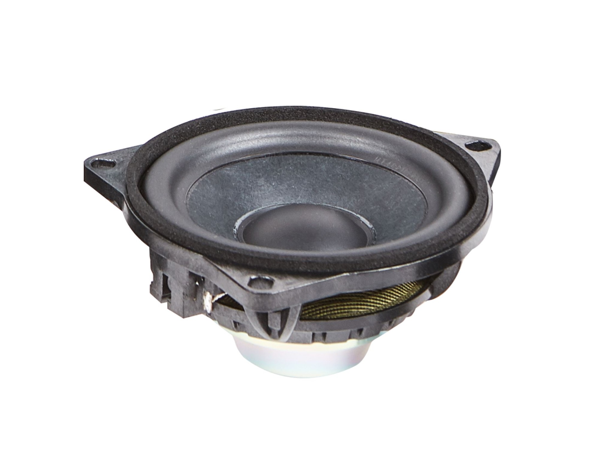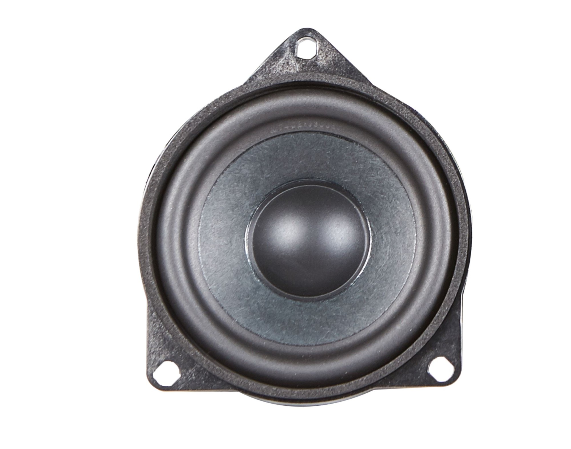 | Тип на високоговорителитеКоаксиални високоговорители: Коаксиалните високоговорители се характеризират с конструкция, наречена всичко в едно. Високочестотният и среднобасовият говорител са в един и същ кош. Предимството е по-лесен монтаж, но поради свързването или близостта на честотните диапазони в един говорител обикновено се понижава качеството на звука. Обикновено в центъра на среднобасовия говорител се намира високочестотният говорител, чиито звукова бобина работи във втората въздушна междина на общия магнитен кръг. Коаксиален говорител с три честотни диапазона се състои от среднобасов говорител, отпред на специален носач е поставен средночестотният говорител и отделен високочестотен. Компонентни високоговорители: Компонентните високоговорители се отличават с разделянето на отделни честотни диапазони: високочестотен + среднобасов + евентуално басов диапазон. Отделните говорители могат да бъдат разположени напълно отделно, което води до по-добро звуково и акустично представяне. В огромното мнозинство от случаите при компонентните високоговорители се доставя и външна кросоувърна мрежа, която разделя високите, средните/среднобасовите и при системи с три честотни диапазона и басовите честоти, както и позволява настройване на нивото в децибели на високочестотния говорител (напр. +2 dB, 0 dB, -2 dB), стръмността (напр. 6 dB/октава, 12 dB/октава) или активно/bi-amp свързване. | Средночестотен |