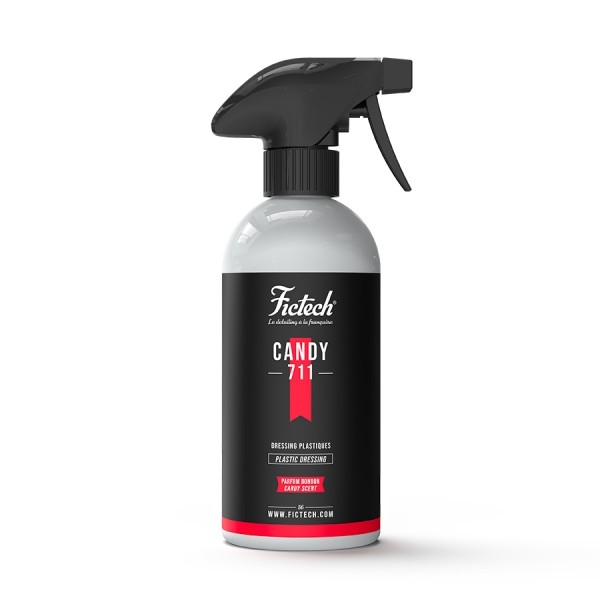 Fictech Candy освежава и възстановява интериорни и екстериорни пластмаси. Оставя повърхността суха, нелепнеща и с естествен сатенен вид. След нанасяне повърхността е сатенена с хидрофобни свойства. Последващата грижа за пластмасите е по-лесна и по-бърза. По време на работа ще ви зарадва приятен сладък аромат.