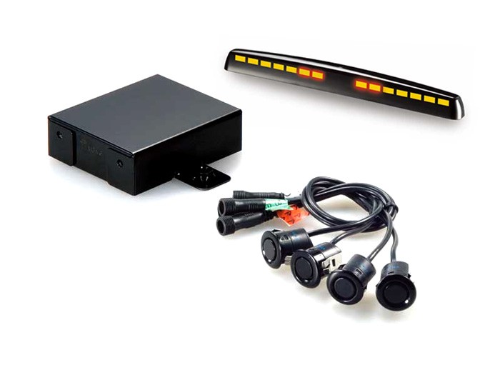Съдържание на опаковката: парктроник сензори 4 бр., управляваща единица, кабели, сверло, инструкция, гаранционна карта