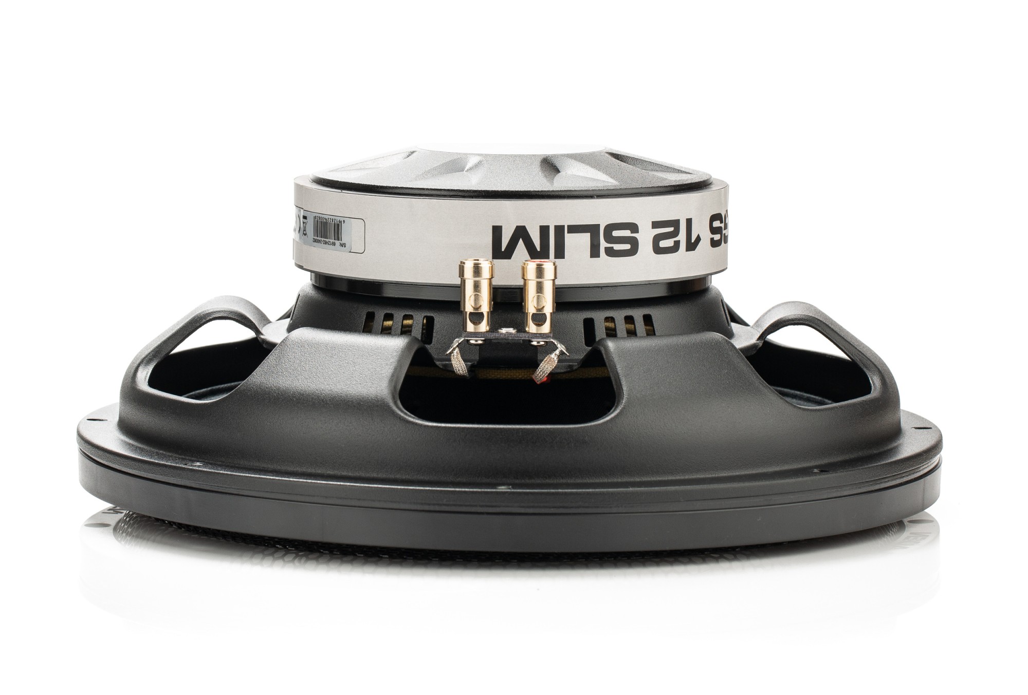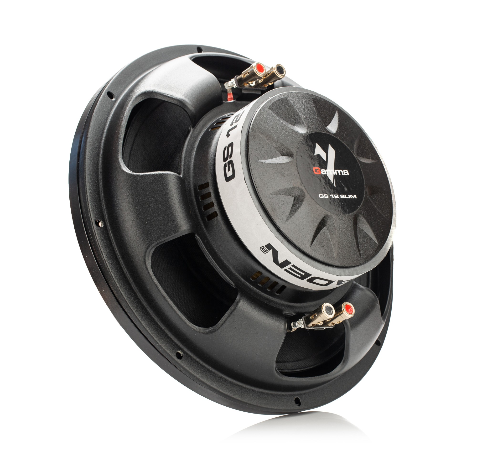 Субуфер с малка монтажна дълбочина от новата моделна серия Gamma предлага дълбоки баси при минимални изисквания към обема на кутията – идеално решение за инсталации с ограничено място. Благодарение на специално проектирания преобразувател за компактни кутии, субуферът Gladen Gamma GS12-Slim предоставя мощен и прецизен звук дори при използване на усилватели с по-ниска мощност. Оборудван е с метален кош, повърхностно обработена хартиена мембрана и се доставя с защитна решетка и монтажна рамка. Перфектен избор за всеки, който търси качествено и динамично възпроизвеждане на ниските честоти и лесна интеграция във всеки аудиосистем.