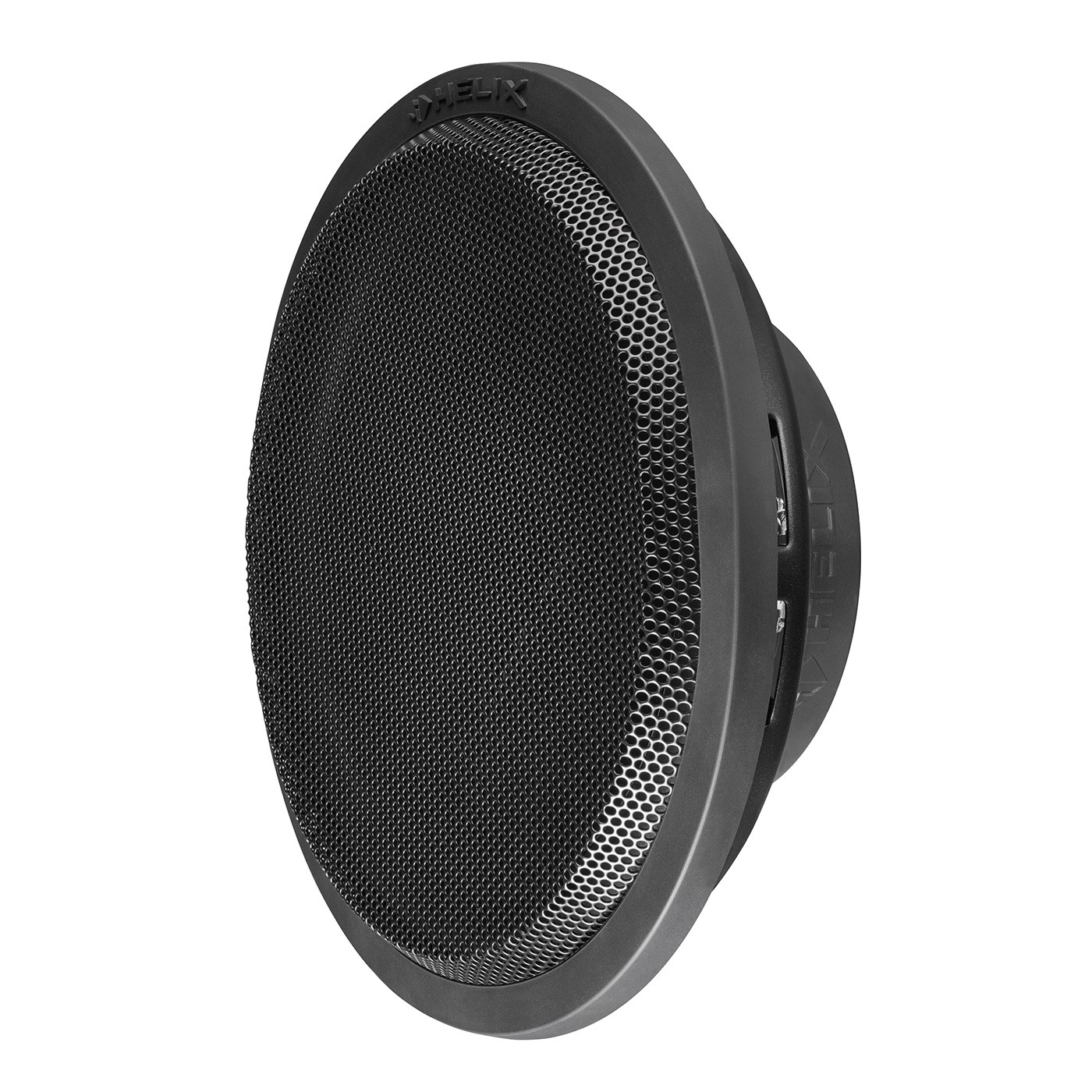 С плоските субуфъри Helix IK S реализирането на особено компактни кутии вече не би трябвало да бъде проблем. Изключително малката монтажна дълбочина отваря нови възможности за инсталация, при която не е необходимо да се правят акустични компромиси. Освен това благодарение на използването на големи говорни намотки и ниска резонансна честота серията Helix IK S осигурява изключителна басова мощност, която не отстъпва на ууфъри с по-големи размери. Изключително твърдата хартиена мембрана в комбинация със силна задвижваща система лесно превръща мощността на усилвателя в могъщо акустично налягане без каквито и да са компресионни ефекти и същевременно се отличава с финес при възпроизвеждане на детайлни удари. Магнитната система има отвор с резба отзад, което позволява закрепване на ууфера към задната стена на кутията. Освен качествения терминал за свързване с позлатени винтови клеми, в доставката е включена и здрава защитна решетка. За оптимален басов резултат в инсталации за любители в техничния лист ще намерите препоръки за затворени и bassreflex кутии с всички параметри, като чист обем, честота на настройване на портовете или настройки на DSP.
