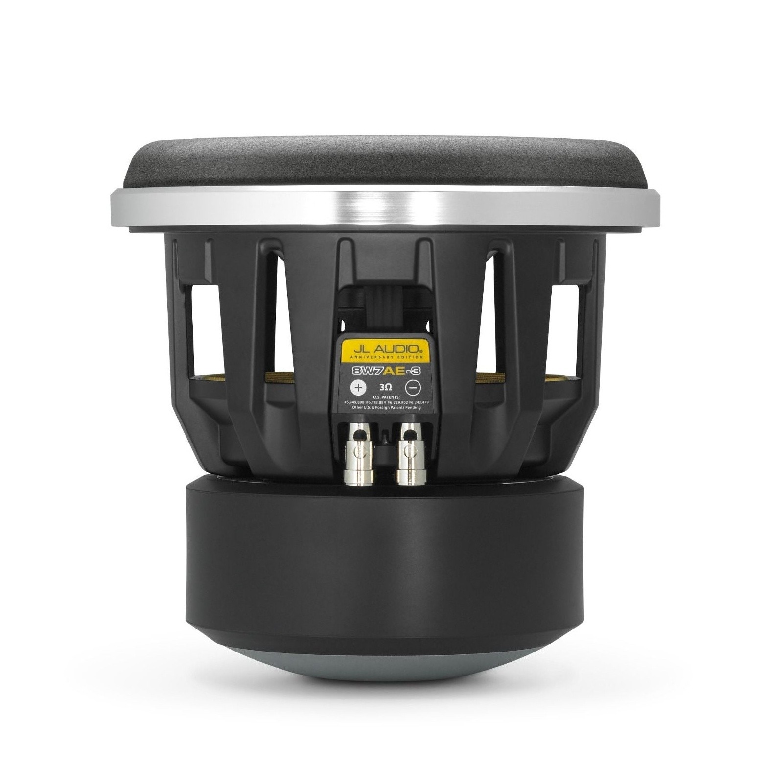 Платформата W7 през последните години се е превърнала в референтен стандарт в света на висококласното домашно аудио. Вариантите W7 се използват в ултрапремиум домашни субуфери JL Audio Fathom® и Gotham®, които получиха най-високи оценки и препоръки от водещите световни рецензенти и ежедневно се използват от най-добрите световни студия за запис и мастеринг. Уникалният дизайн на моделите W7 осигурява комбинация от екстремен акустичен изход, прецизна динамика и изключително качество на звука – всичко в един субуфер. Ключът към тези възможности се крие в самото ядро на конструкцията на говорителите, където електромагнитното и механичното поведение се съчетават по изключително сложен начин. Интензивните изследвания на това поведение от JL Audio позволяват оптимизирането на моторите W7 и окачващите системи, така че да възпроизвеждат вярно всеки детайл от баса с ненадмината линеарност и прецизност. За моторните, окачващите и монтажните технологии, използвани при W7, са издадени осем американски патента. Всеки субуфер W7 се произвежда според стриктни стандарти за качество в завода в Miramar, Флорида, с компоненти от глобални доставчици. Всеки от четирите модела има изцяло оригинален дизайн от рамката до задната плоча. Дори винтовете, използвани при монтажа, са специално проектирани и произведени според конкретни спецификации. Може би е леко обсебване, но също така е търсене на максимална вярност при възпроизвеждане на звука - цел, която JL Audio преследва с страст и без компромиси. Преди десет години JL Audio пренаписа нискочестотното възпроизвеждане със своите майсторски и изцяло новоразработени субуфери W7. Сега Anniversary Edition W7 Series 8W7AE-3 предлага най-новите подобрения на този пробивен дизайн, подчертани със сатенено черна рамка, сребристо анодизиран декоративен пръстен и специално юбилейно лого. Този субуфер заслужено се счита за най-добрия 8-инчов субуфер, който някога е бил произведен, благодарение на изключителните си възможности и прецизен дизайн. Впечатляващият еднопосочен линеен ход над 19 mm позволява на този субуфер да достигне ниво на мощност и динамика, което оставя зад себе си останалите 8-инчови модели.