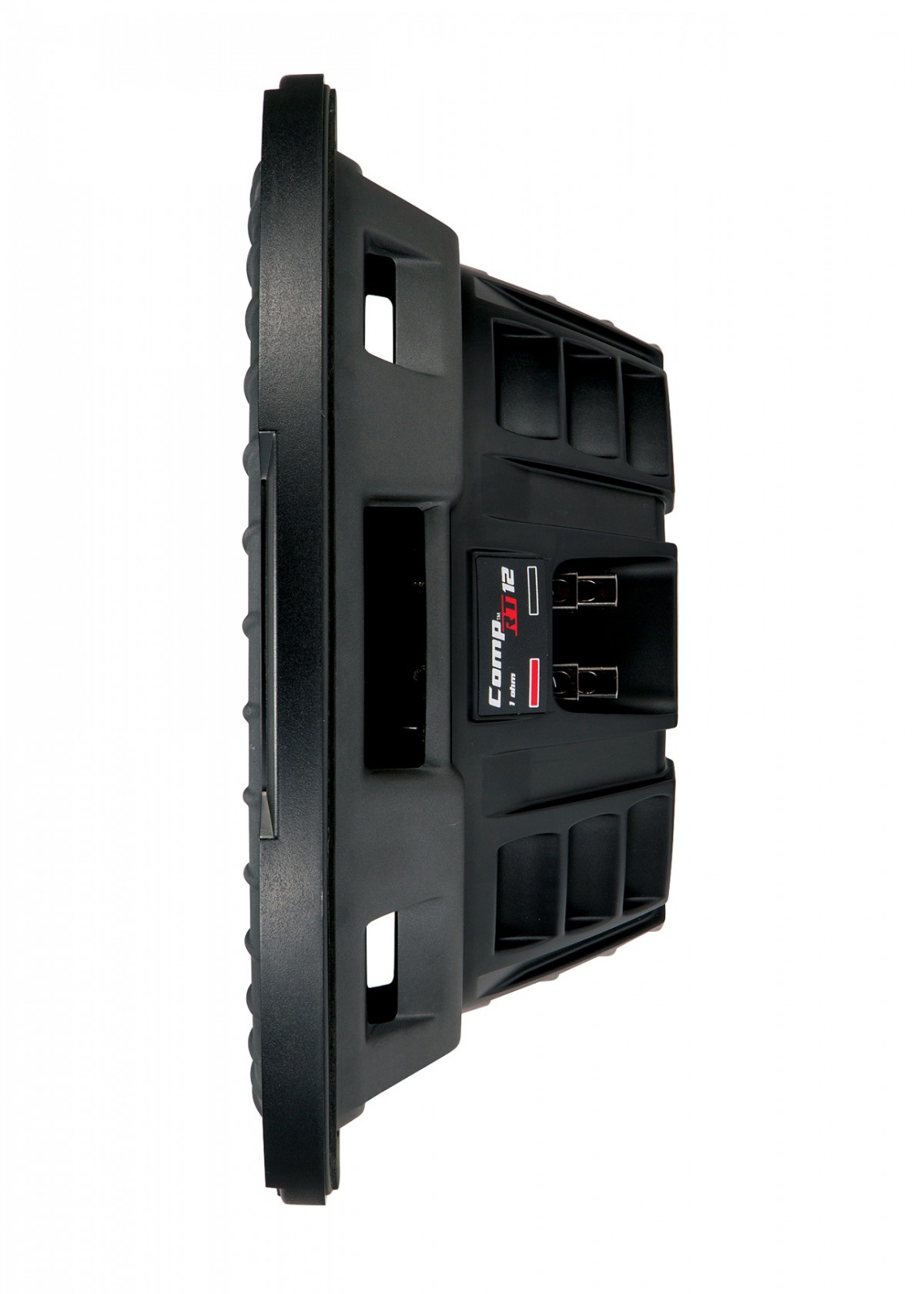 12-инчовият CompRT е тънък субуфер с дизайн на двойна намотка с импеданс 2 Ω. Здравата магнитна конструкция надеждно осигурява огромен контрол на мощността без да влияе на монтажната дълбочина. Специално проектираната задна плоча UniPlate™ и твърдият полюсен накрайник служат като единна топлоотвеждаща единица и осигуряват отлично термично управление. 12-инчовият субуфер CompRT работи най-добре в затворено или bassreflex оформление и с препоръчителна мощност 500 W.| Каталожен номер | CWRT122 |