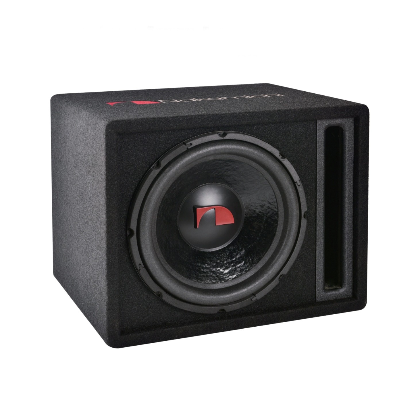 - Укрепена хартиена мембрана на субуфера с лого Nakamichi.