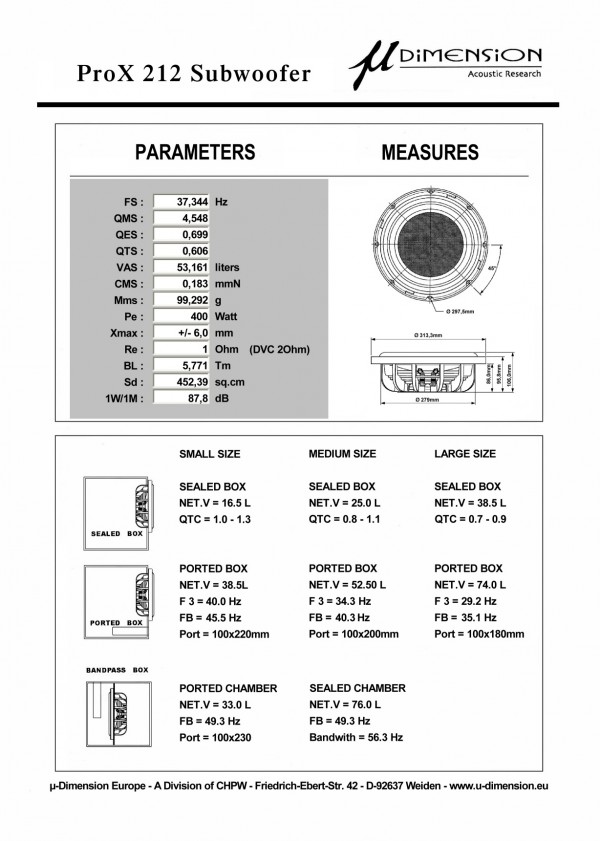 Субуфер u-Dimension PROX 212