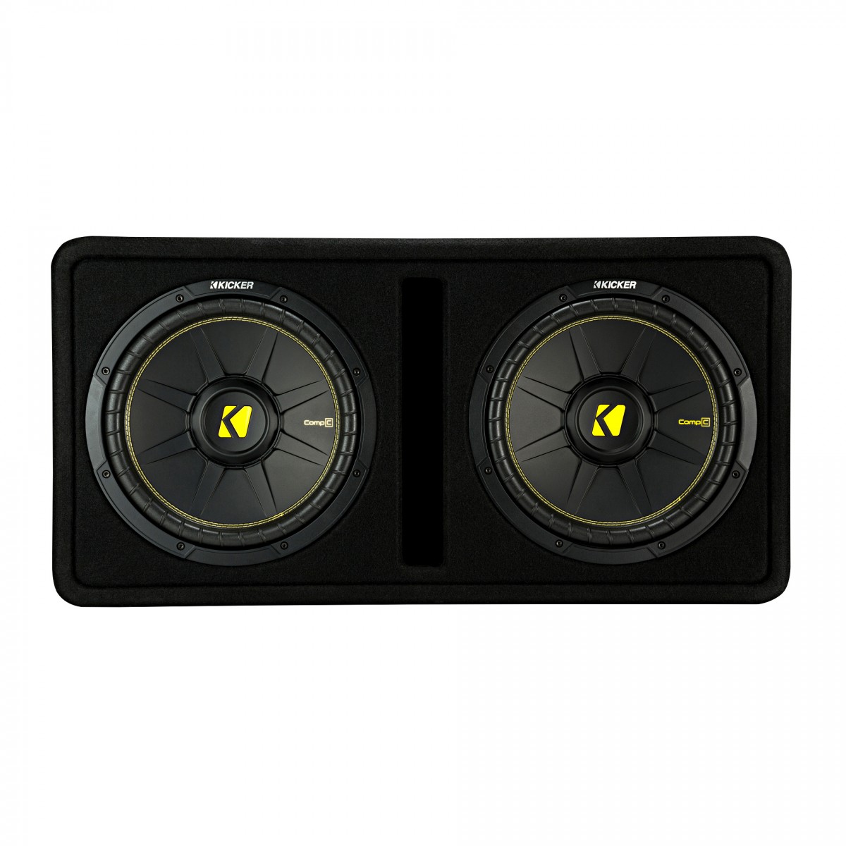 Двоен 12-инчов субуфер CompC, който се доставя с един 2-омов терминал за свързване.Ключови характеристики на субуфера Kicker DCWC122