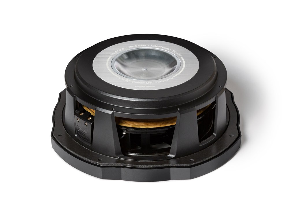 Повече бас в по-малко пространство - новата серия Alpine Shallow R предлага изключителна бас сила в ултра компактен дизайн, който пасва и е подходящ практически за всяко приложение. Alpine повдига компактния бас до ново ниво чрез модернистичен дизайн, съчетан с инженерни иновации, които позволяват постигането на ултра плитък профил, без да се прави компромис с нивото и качеството на баса. Ексклузивната конструкция на механиката с двойна междина в комбинация с мощен неодимов магнит позволява обработка на висока мощност 600 W RMS и 1800 W макс. Освен това, благодарение на персонализиран корпус от отлят алуминий и иновативна конструкция на конуса на ууфера, се постига изключително линеен X-max 20 mm, гарантиращ най-доброто възможно басово изпълнение. Плитките субуфъри Alpine от серия R ви дават най-доброто от двата свята по отношение на размер и звук. Освен това опционалната мрежеста решетка Alpine KTE-RS10G придава брутален вид и придава на вашата инсталация първокласно оформление, като същевременно осигурява необходимата защита на устройството.