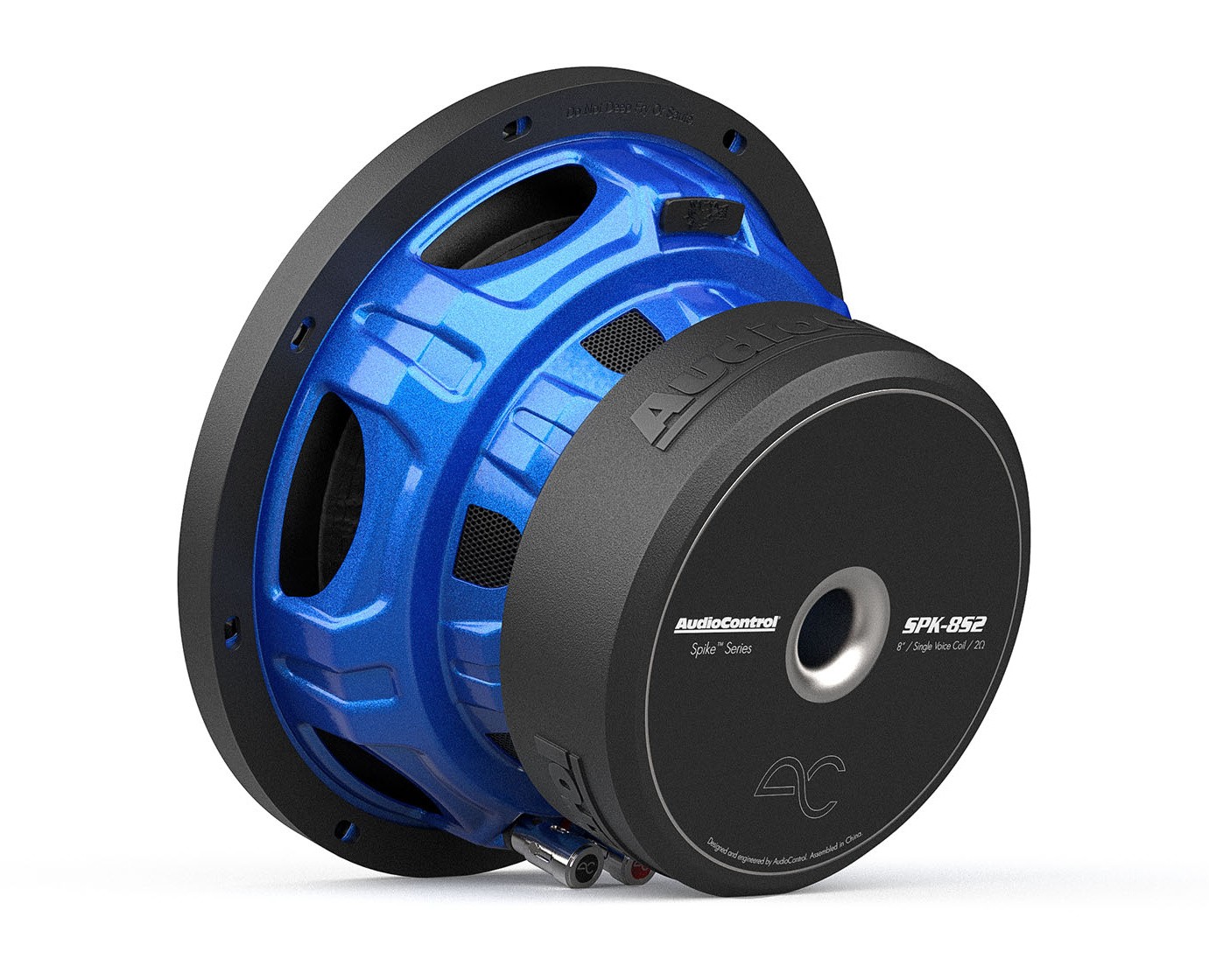 AudioControl представя новата серия субуфъри Spike, които предлагат максимална универсалност, висока мощност и прецизно възпроизвеждане на ниските честоти. Независимо какъв тип музика слушате, субуфърите Spike ще повишат нивото на слушане в автомобила ви. Тези субуфъри са проектирани да предоставят чисти и прецизни басове за завладяващо музикално преживяване. На пръв поглед привлича здравата кошница, лакирана в син метален цвят, която намалява резонансите и изкривяването и осигурява отличен звук. Включен е вътрешно проектиран радиално охладен мотор за повишена издържливост на субуфъра и трислойна подвижна бобина, която понася високи мощности. Можете да увеличите нивото на звука без притеснение и да се насладите на мощни басове без изкривяване. Вероятно няма да повярвате на звука, който произвежда хартиена мембрана с покритие от слюда. Двойните сини шевове и голямата екскурзия на окачването само подчертават характеристиките на този субуфър, чиито комплект включва и система с двойни прахови капачки за контрол на компресията на кутията, осигуряваща стабилност за по-добър звук. Всеки субуфър Spike се доставя с предпазна решетка, която го защитава от повреди, така че можете спокойно да се наслаждавате на пътуването. Налични са в размери 8", 10" и 12".