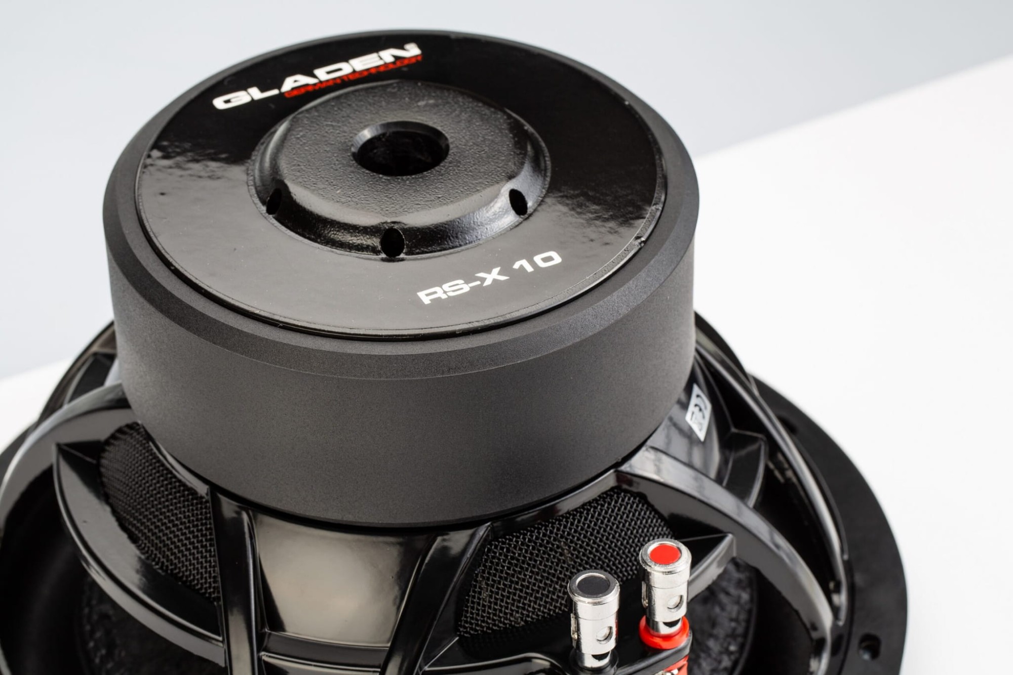 Субуферите Gladen RS-X комбинират висока мощност при високи нива на възпроизвеждане, без да изискват големи кутии. Тези качества се постигат чрез комбинация от няколко иновации от серията Gladen SQX, като диафрагмата и алуминиева кошница с нова геометрия на говорителя, която позволява инсталиране в ултракомпактни корпуси. Модулната гама Gladen RS-X предлага сериозна доза мощност и ще намери място и в автомобила на взискателния "хайфай" фен, който чува всеки детайл в музиката. Отличителната черта на серията RS-X е диафрагмата, изплетена с ефектна червена нишка. За задвижване можете да използвате 2-канален усилвател Hertz HCP 2X.Основни характеристики на субуфера Gladen RS-X 10
