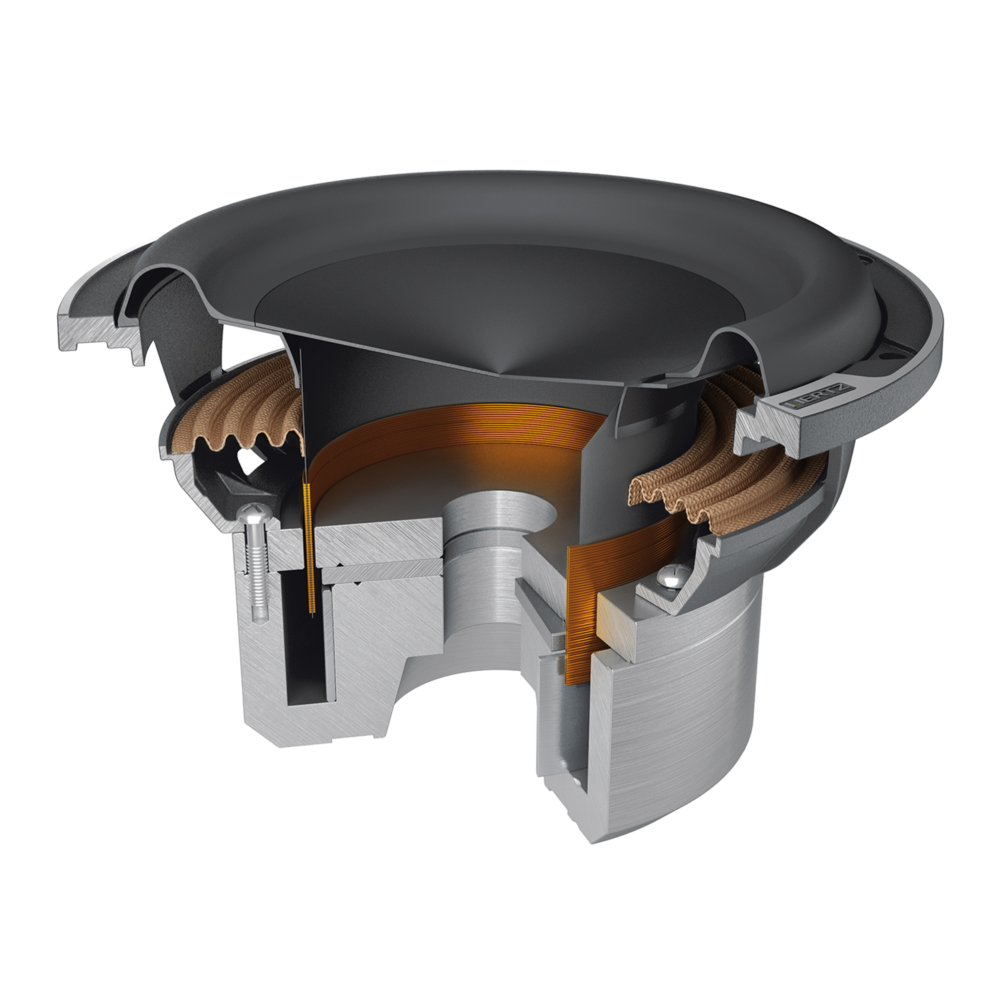 - „Boundary Free" гумен суспензор IIR за по-висок SPL от други субуфъри със същия външен диаметър.