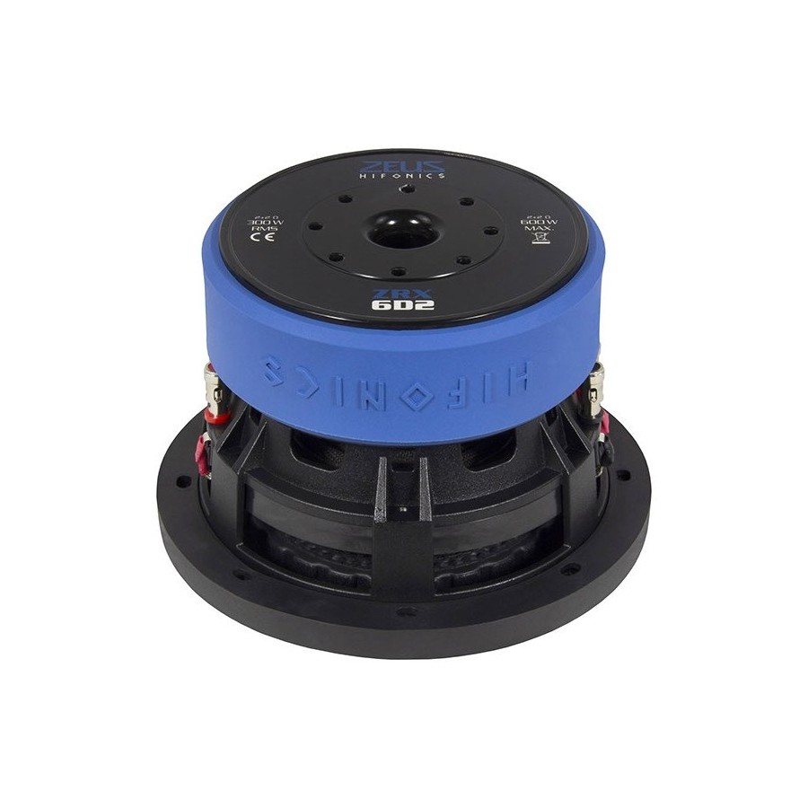 Напълно новите субуфъри ZEUS POWER ZRX от Hifonics внасят глътка свеж въздух на пазара. И това не само в добре познатите размери 10 до 15 инча, но и в умерените размери 6,5 и 8 инча. Още на пръв поглед е ясно, че може да се очакват силни басови удари. Особено широкото центриране и висококачествените двойни паячни опори от полибавна с задно вентилиране гарантират много висока издръжливост и възпроизвеждане без компресия. Новите ребрести окачвания, двойно пришити към подсилената хартиена мембрана, позволяват много линейно отклонение. Двойно зашит е и монтажът на бобините. С всички тези съставки субуфърите ZEUS ZRX могат да се похвалят не само с отличен импулсен отговор и дълбоки, впечатляващи басове, но и с особена здравина.Основни характеристики