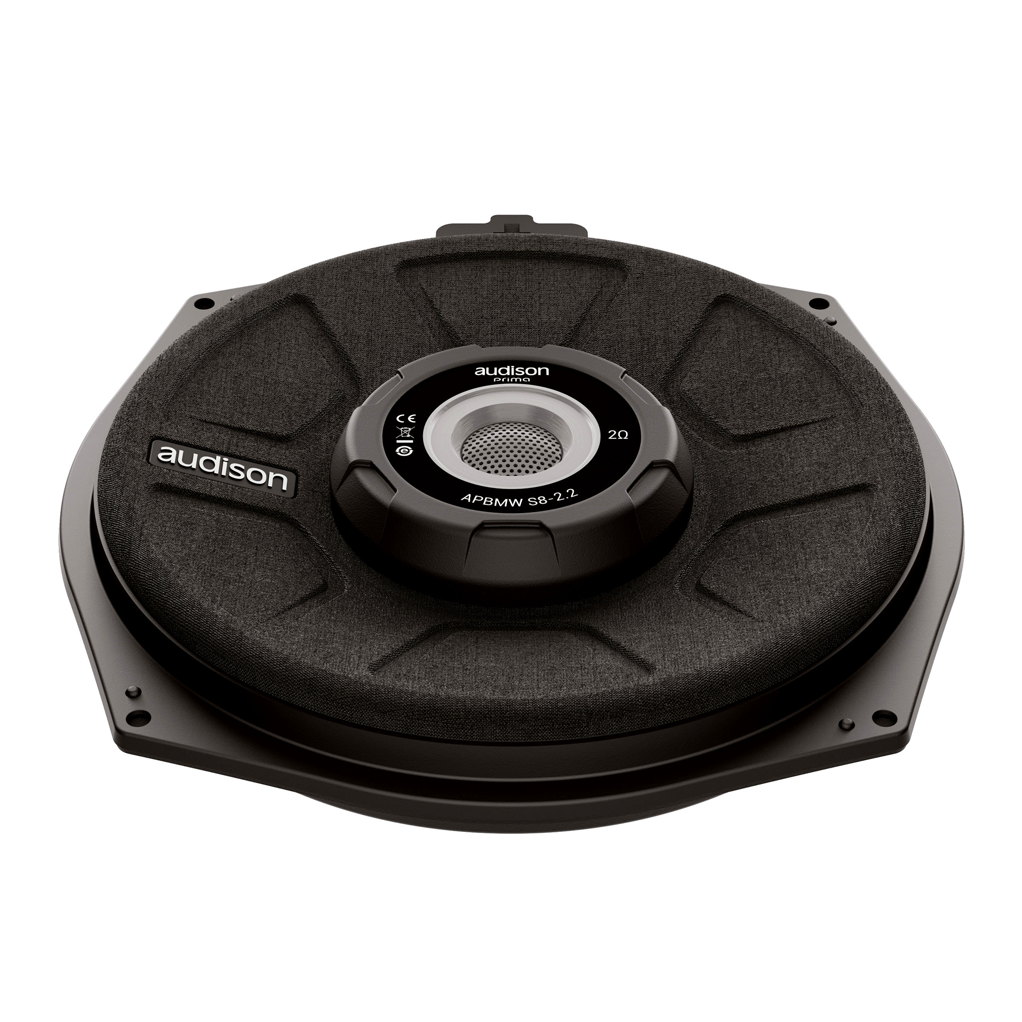 200 mm (8") субуфърите APBMW S пасват точно под предните седалки на автомобили BMW и техните електроакустични параметри са оптимизирани за максимална производителност от пластмасовия корпус разположен под предните седалки. Кошът от ABS пластмаса, подсилен със стъклени влакна, и акустичната конструкция с преден неодимов магнит осигуряват минимална монтажна дълбочина за перфектна съвместимост с широка гама модели BMW. Можете да избирате между S8-2 с импеданс 2 Ω и S8-4 с импеданс 4 Ω за по-голяма гъвкавост на системата.Основни характеристики