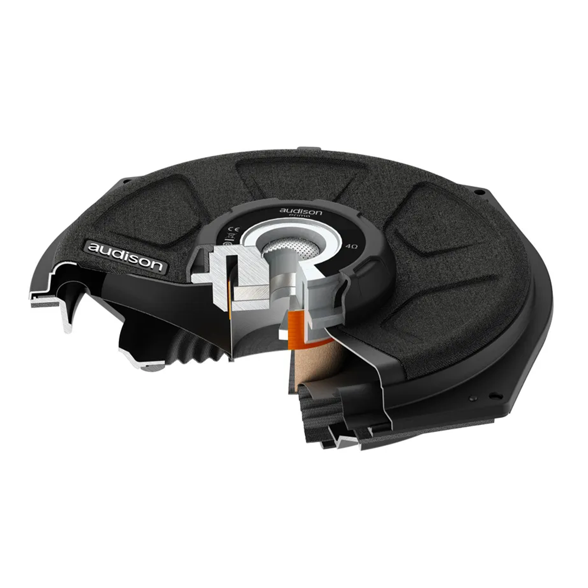 - 38 mm говорителна бобина, навита върху алуминиева подложка за разпределение на енергията и стабилност дори при големи амплитуди.