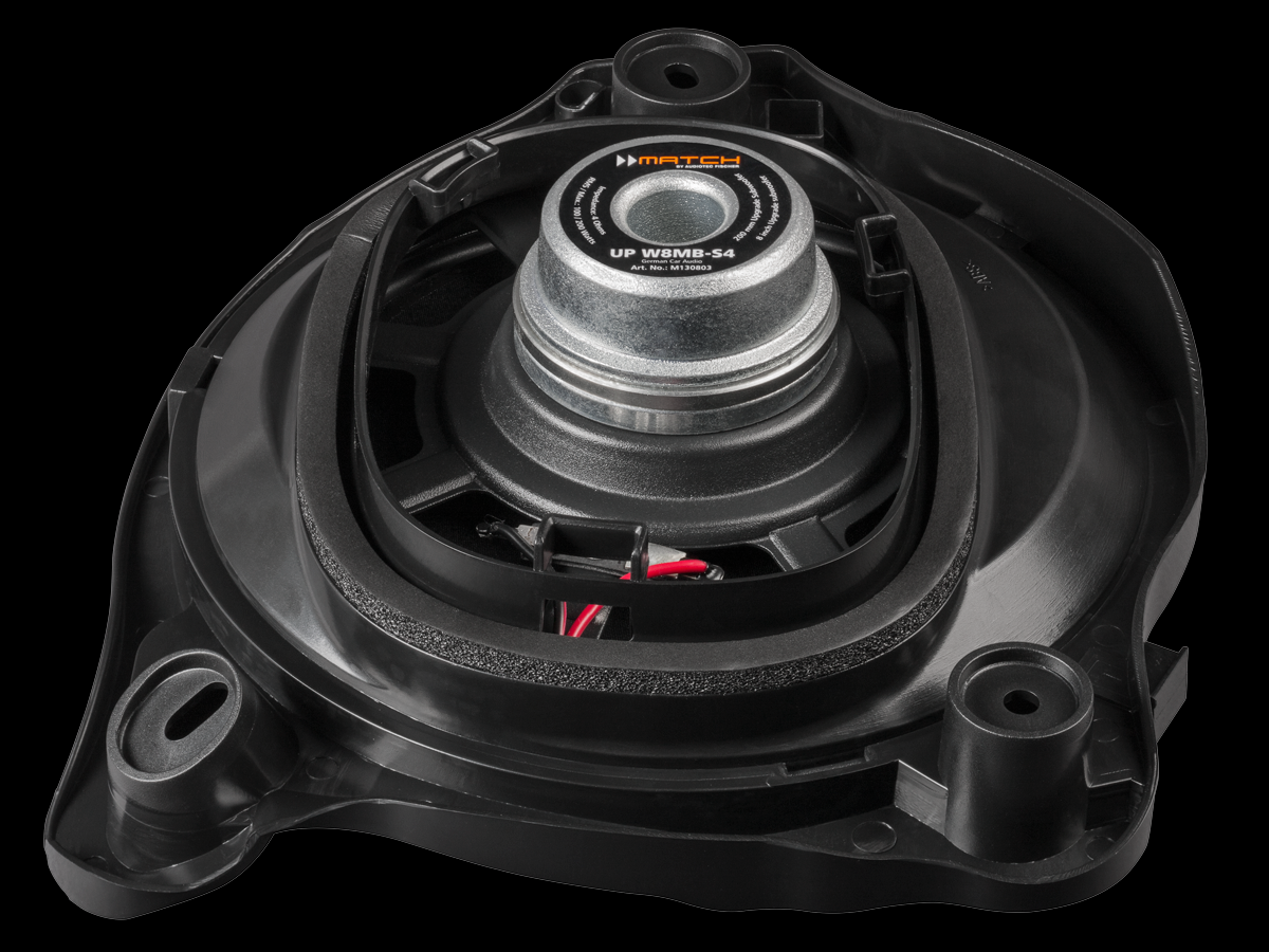 Mercedes несъмнено е синоним на качество и немска прецизност. Що се отнася до аудиосистемите, положението е както при всеки друг автомобил — не се отделя особено внимание. Ако нямате специално S-Class с допълнителната аудио опция Burmester 3D, няма да се насладите напълно на звука в Mercedes. За собствениците на автомобили от клас C, E, S и GLC марката Match предлага надежда за подобрение. Премиум автомобилите заслужават първокласен звук, включително и басовата част, която базовата аудиосистема на Mercedes във тези автомобили няма. Оптималното решение е просто — два високопроизводителни 200 mm басови говорителя от системата UP W8MB-S4 се вписват перфектно в оригиналните монтажни места в преградата и доставят прецизни баси, които подсилват музикалното преживяване. Този комплект звучи отлично в комбинация с усилвател на Match, по-конкретно с модела Match UP 7DSP.