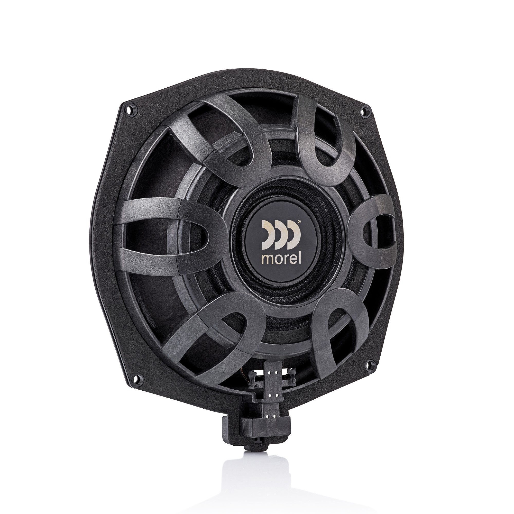 Morel predstavya unikalen OEM sistem za avtomobili BMW s edna cel — da predlozhi parvoklasno kachestvo na zvuka bez kompromisi v duha na plug & play. Nalyat dve komplekta govoritelni sistemi, koito prosto nyamat ekvivalent na pazara po otnoshenie na kachestvoto na zvuka. Kato chast ot referentnata seria subwooferite pod sedalkite Morel IP-BMWSUB82 povdigat basovata sostavka v avtomobilite BMW do sashtestveno novo nivo. Ultratenkiyat 8-palchov (200 mm) subwoofer osiguryava precizni, silni basi blagodarenie na inovativnata topologiya na dvigatelya EVC™ na Morel s moshchen neodymov magnet i golyama 2-palchova bobina. Blagodarenie na dizayna DirectFit shasi, specifichno za BMW, i plug-and-play konektori se osigurqva byarst i lesen montazh vav vsichki modeli BMW sus subwooferi pod sedalkite. Subwooferat IP-BMWSUB82 e proektiran s impedans 2 oma, koeto go pravi mnogo effektivен dori pri izpolzvane s OEM uvilichvatel. Vupreki tova negovata zdrava konstrukciya vi pozvolqva da postignete nay-dobri rezultati sus poveche uvilenie na moshchnostta chrez sytvetstvavasht aftermarket uvilichvatel.
